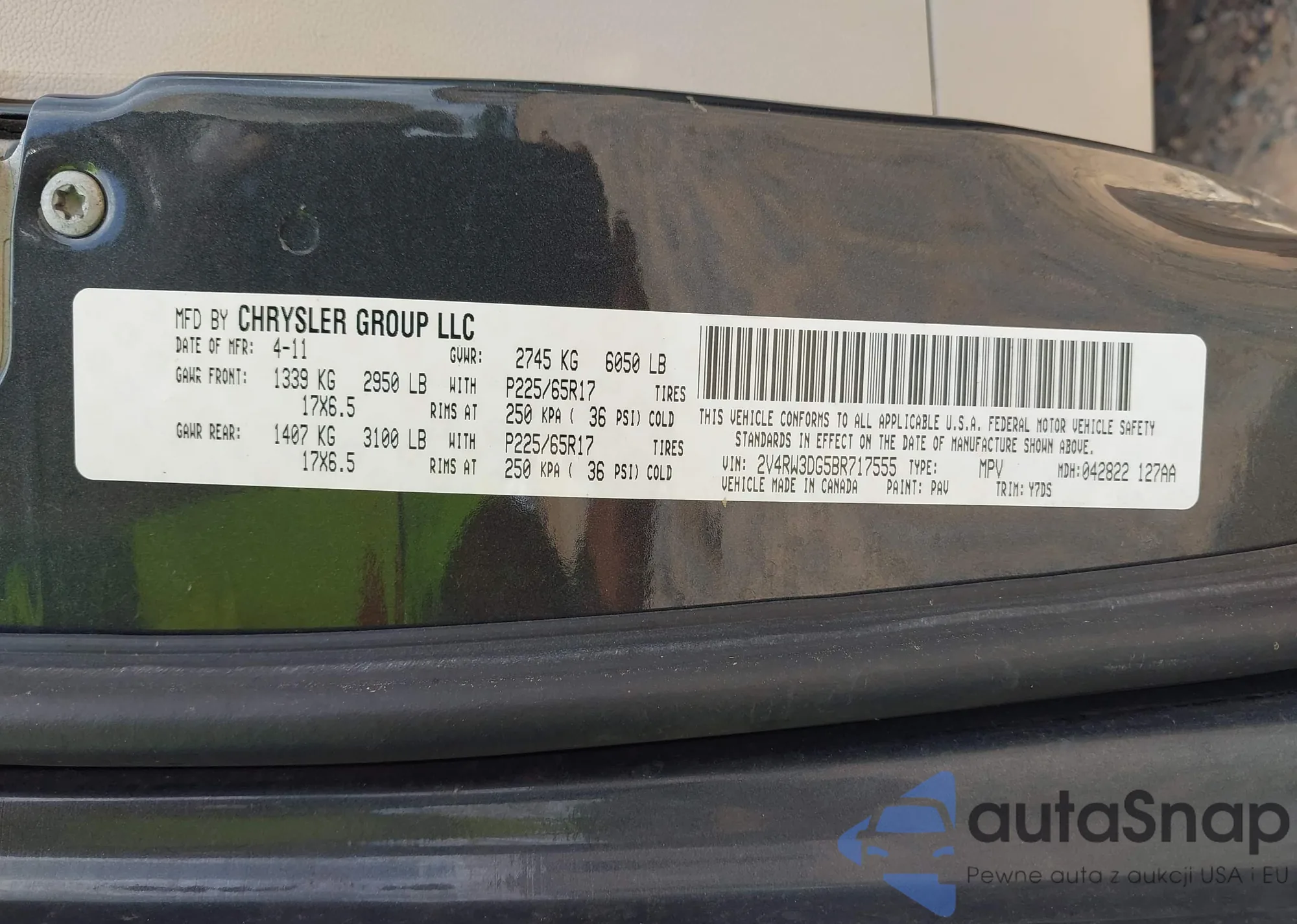 • VIN 2V4RW3DG5BR717555