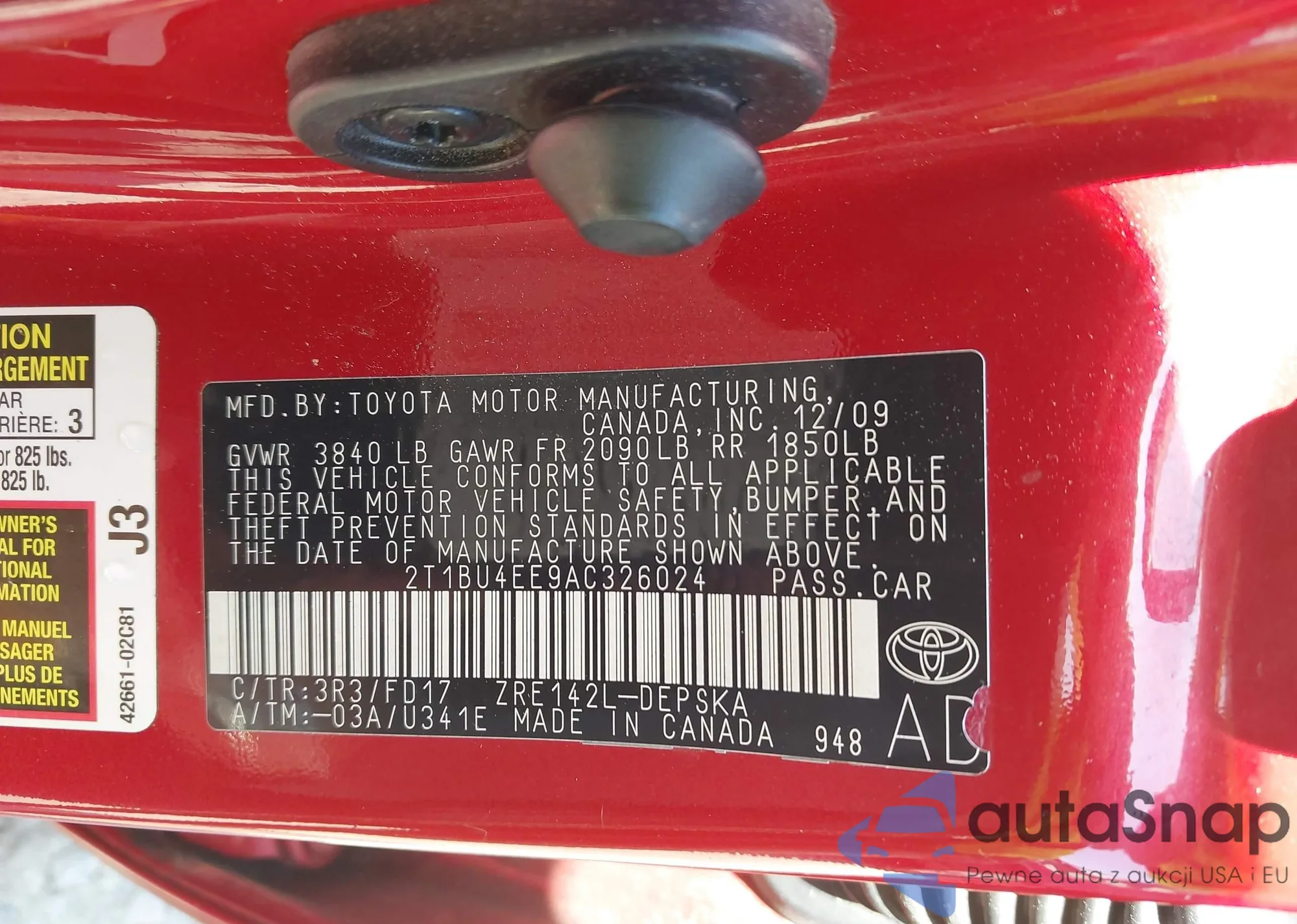 • VIN 2T1BU4EE9AC326024