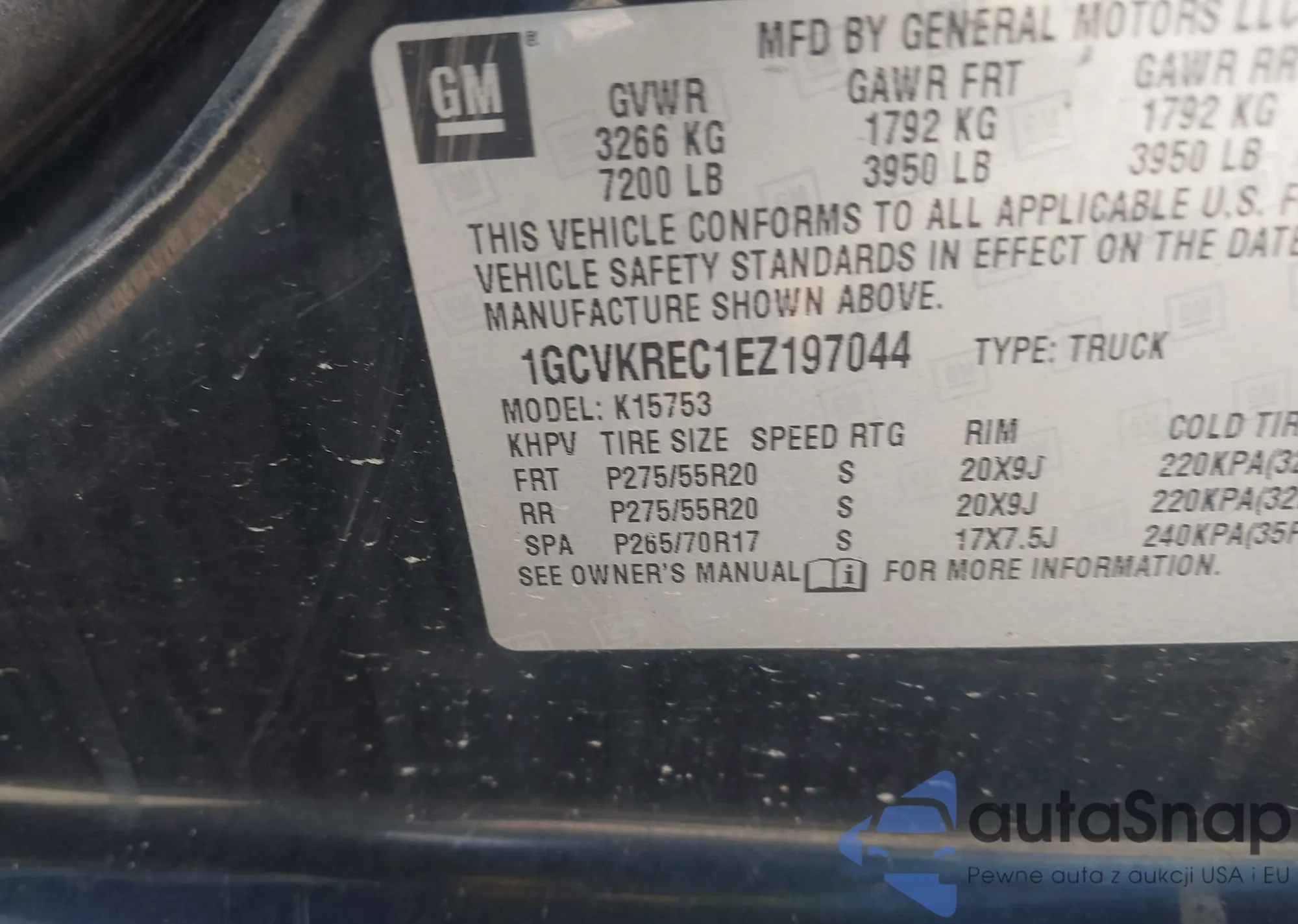 • VIN 1GCVKREC1EZ197044