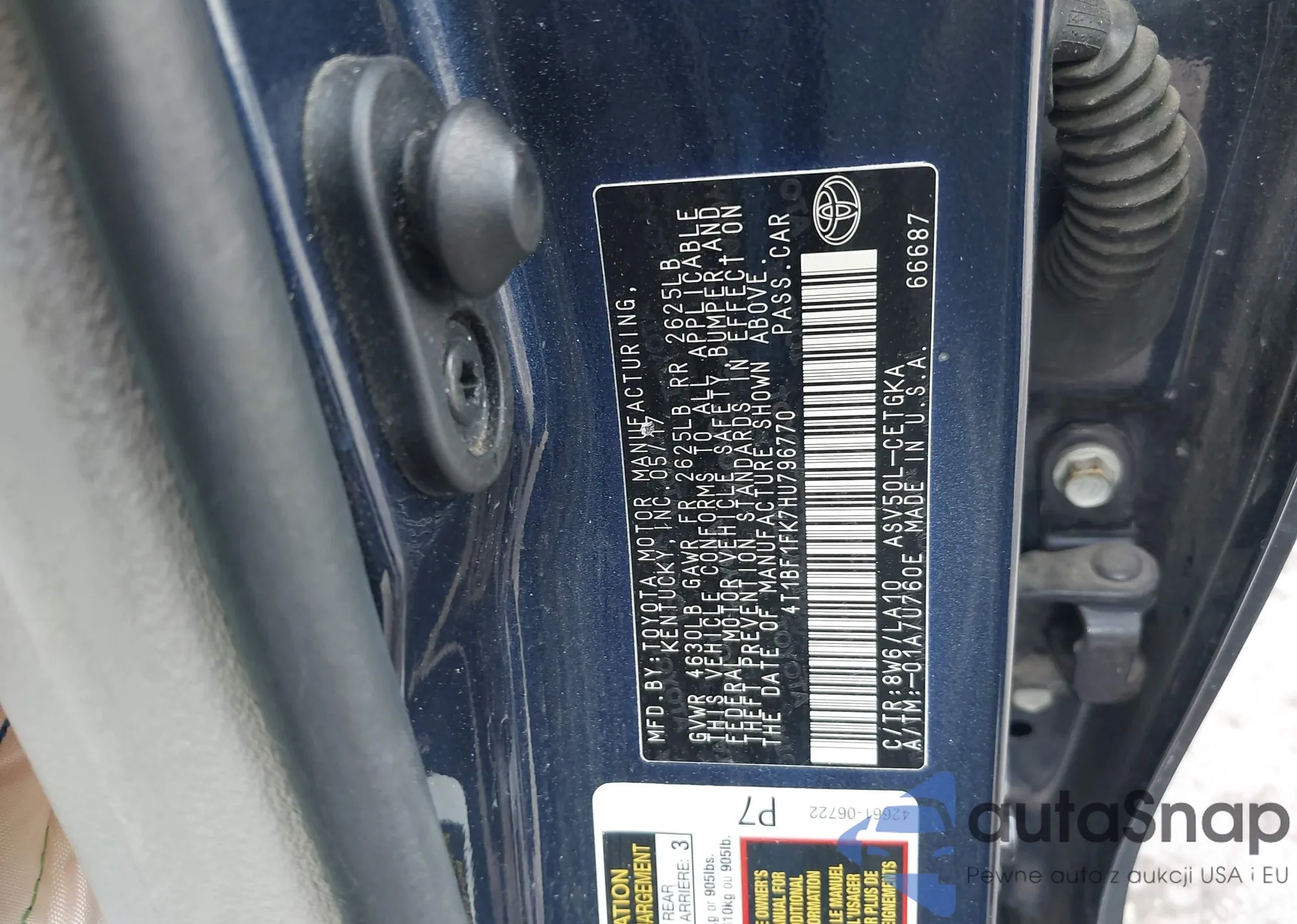 • VIN 4T1BF1FK7HU796770