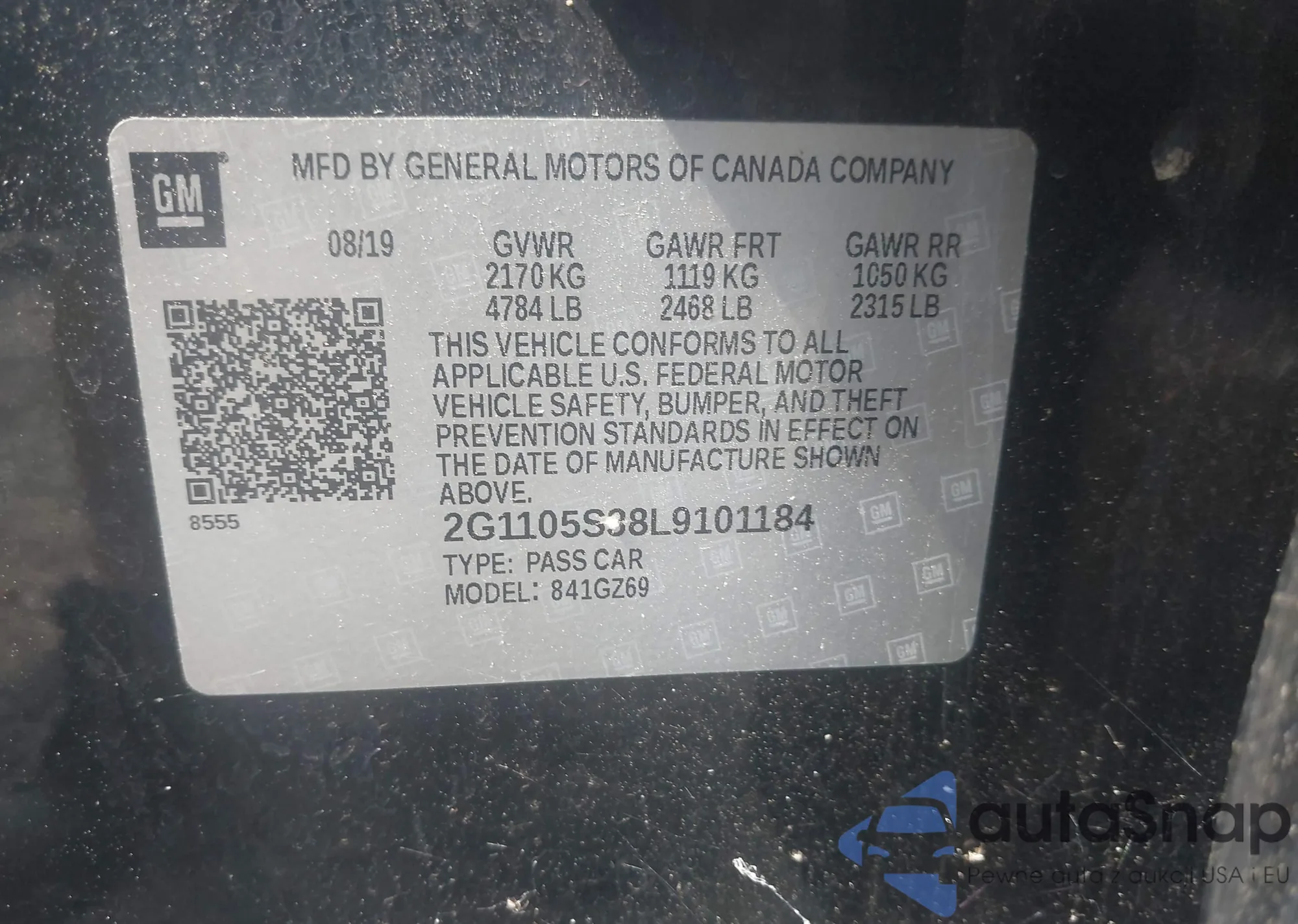 • VIN 2G1105S38L9101184