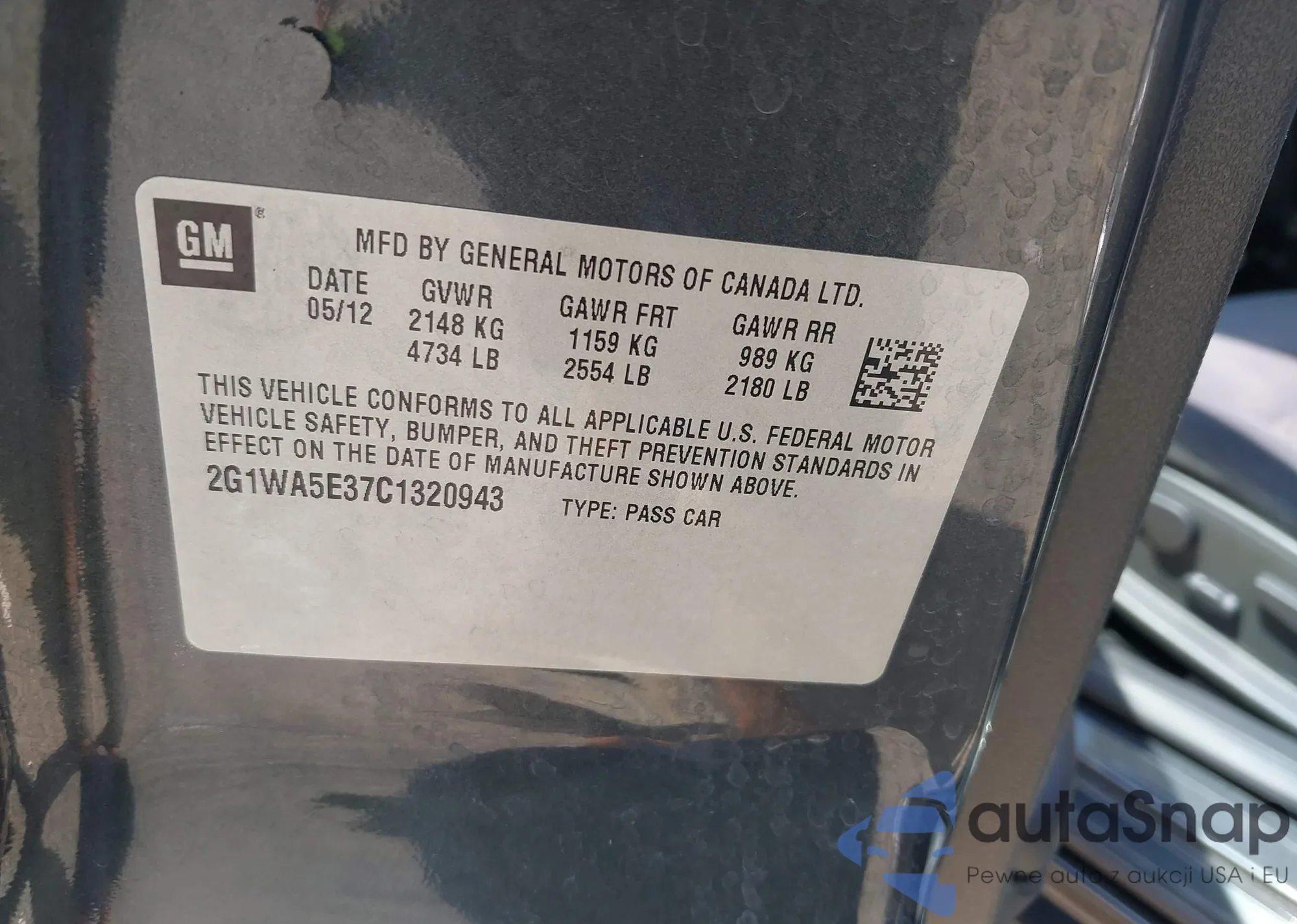• VIN 2G1WA5E37C1320943