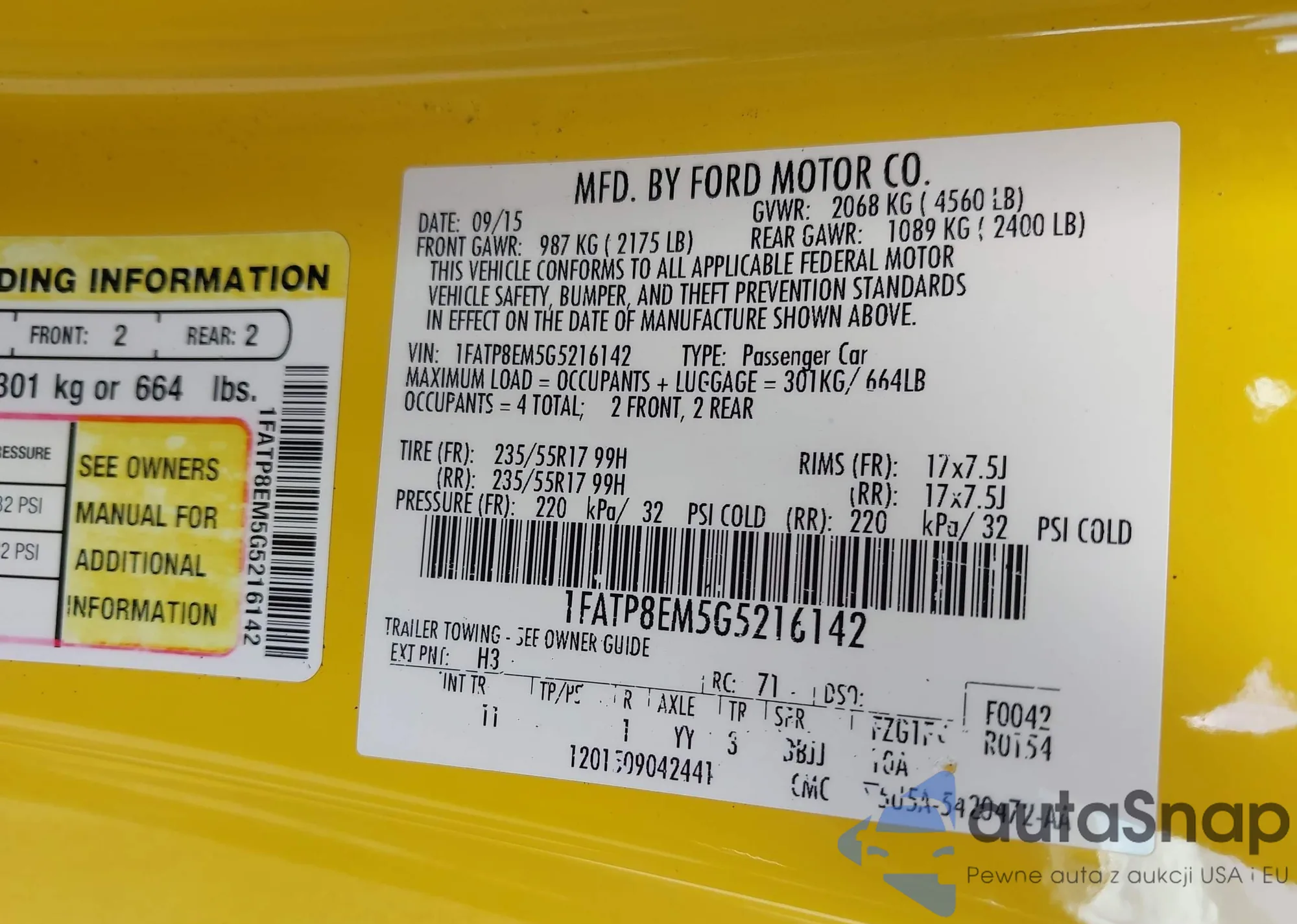 LOT: 42371120 VIN: 1FATP8EM5G5216142