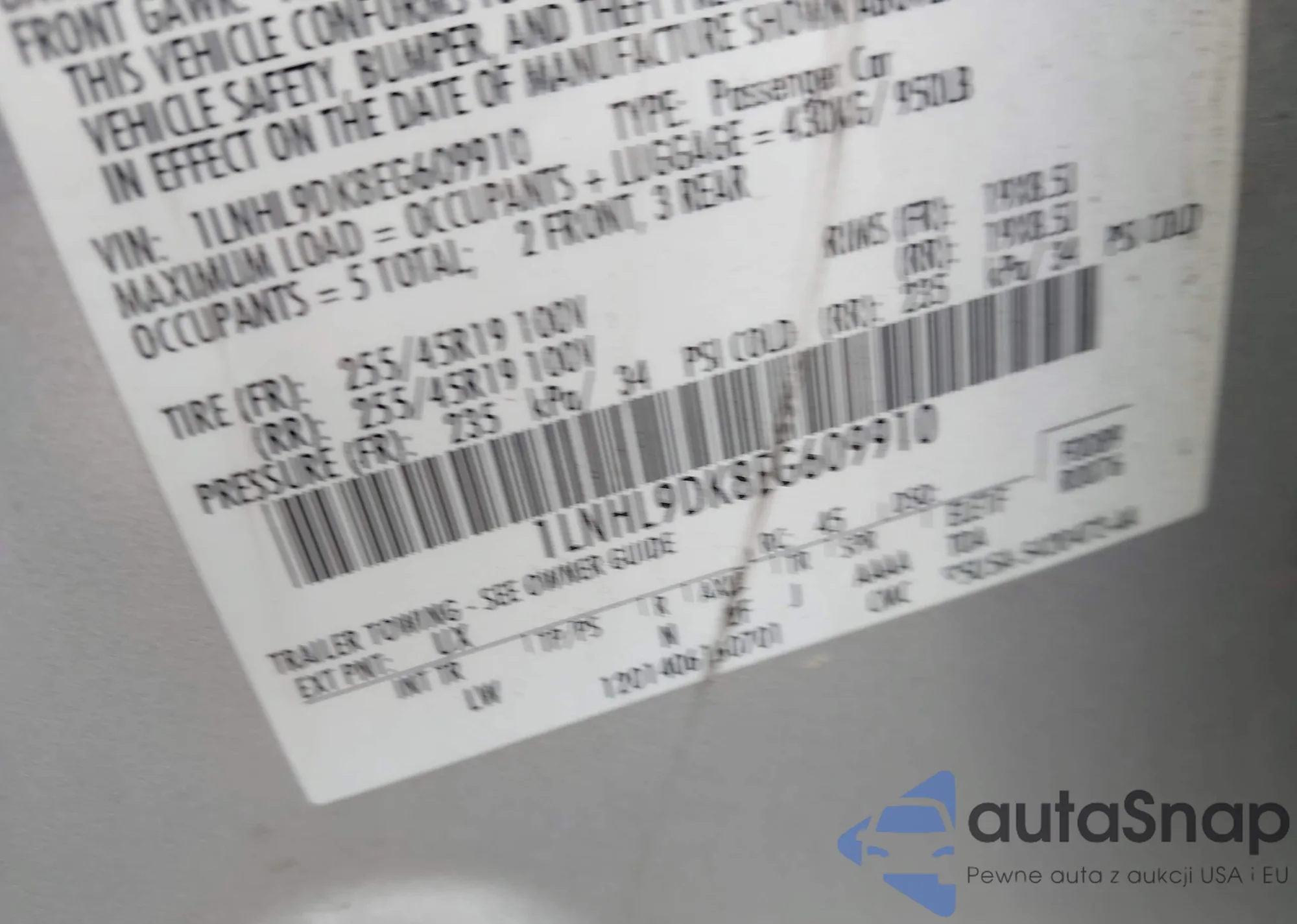 LOT: 42381498 VIN: 1LNHL9DK8EG609910