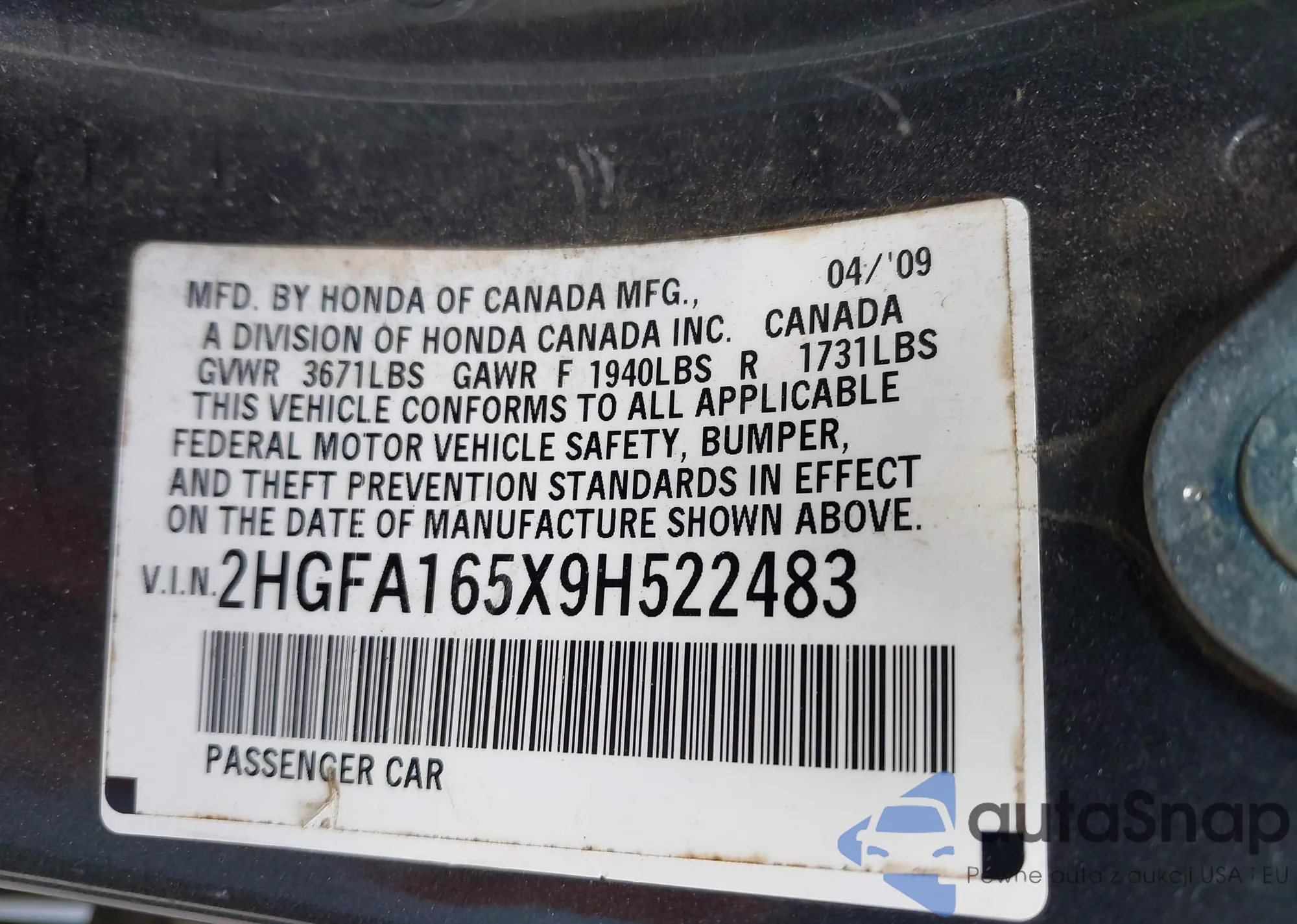 • VIN SHHFK7H41MU202808