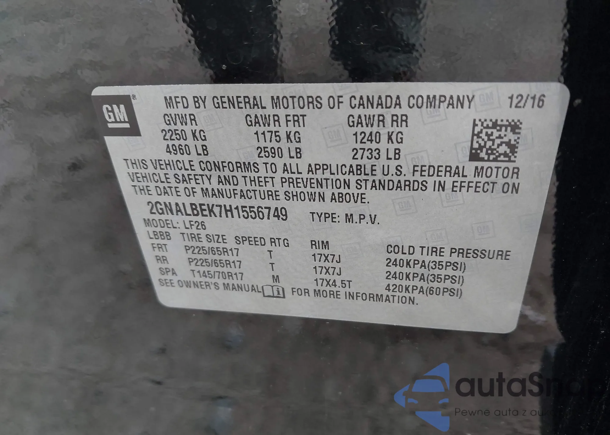 • VIN 2GNALBEK7H1556749