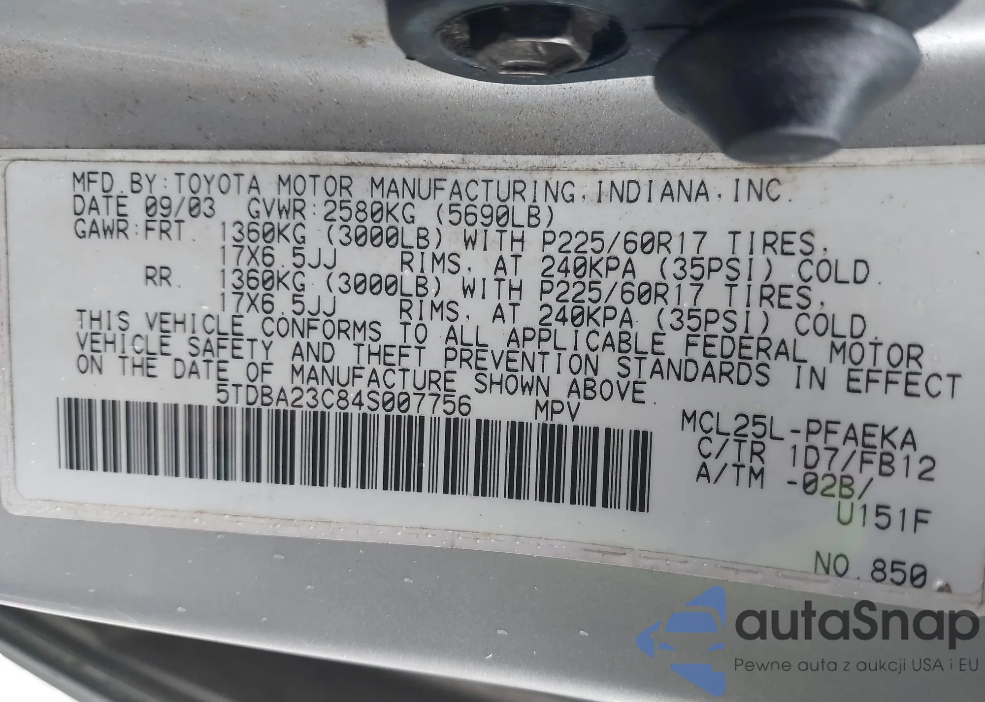 LOT: 42514386 VIN: 5TDBA23C84S007756
