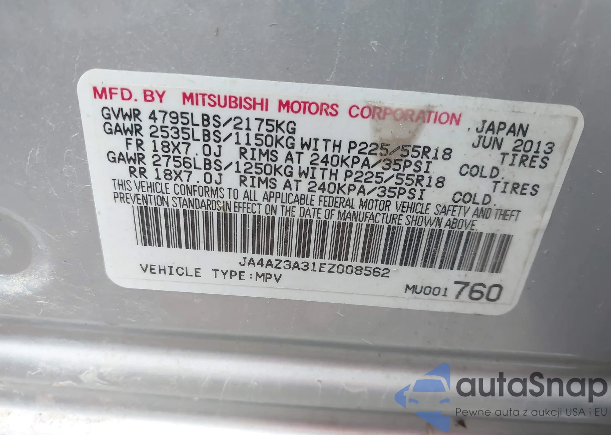 • VIN JA4AZ3A31EZ008562