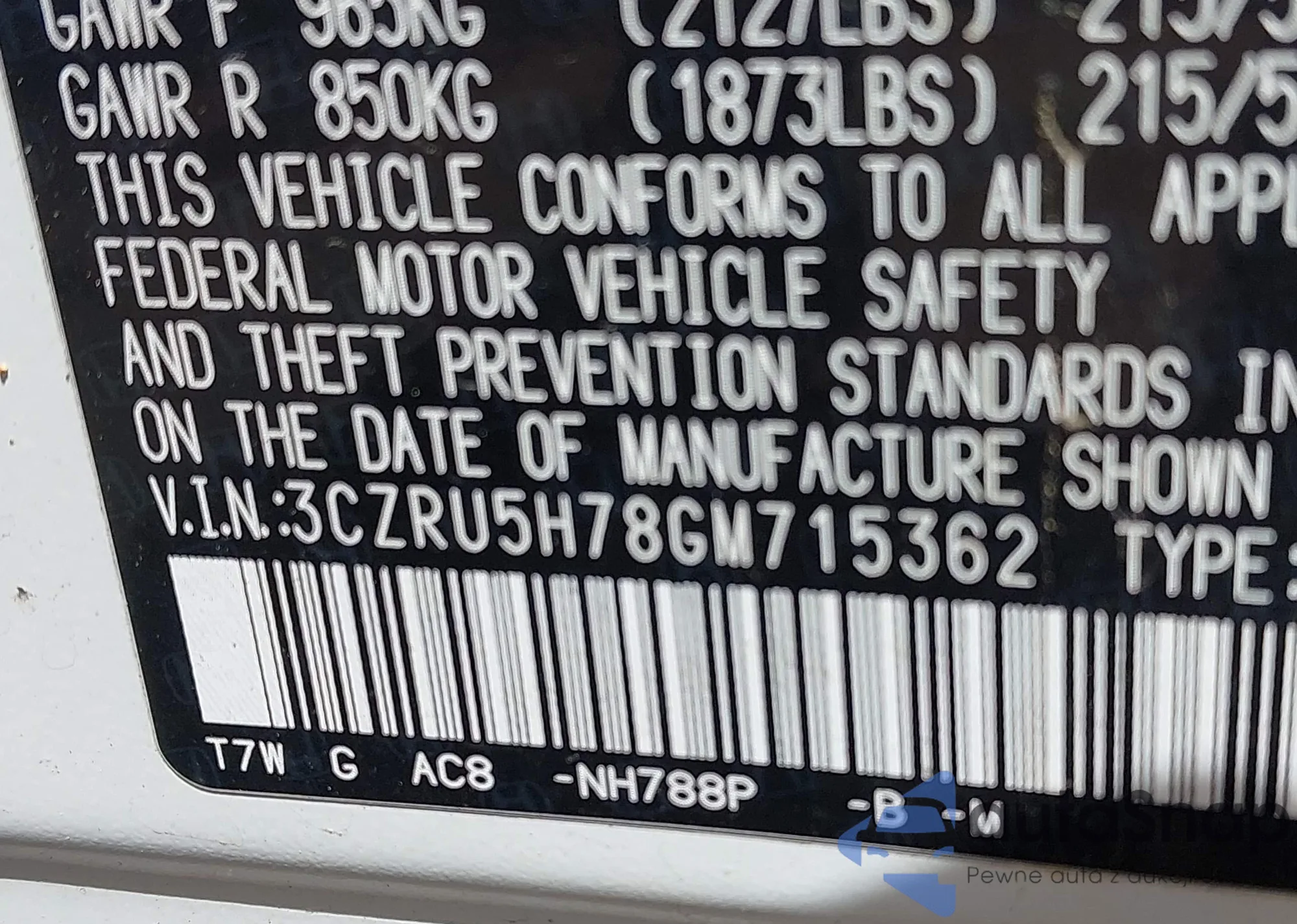 • VIN 3CZRU5H78GM715362