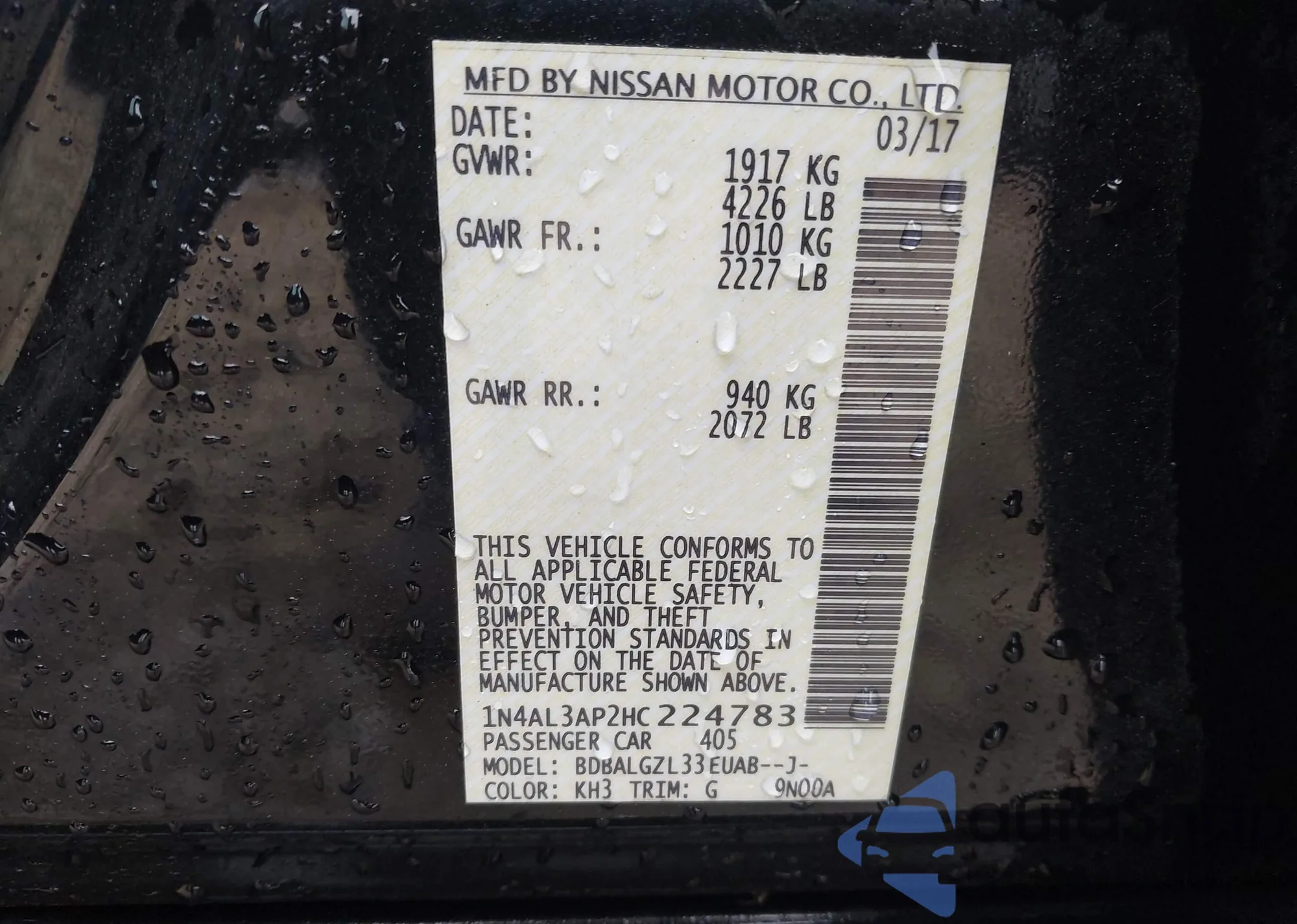 LOT: 42439698 VIN: 1N4AL3AP2HC224783