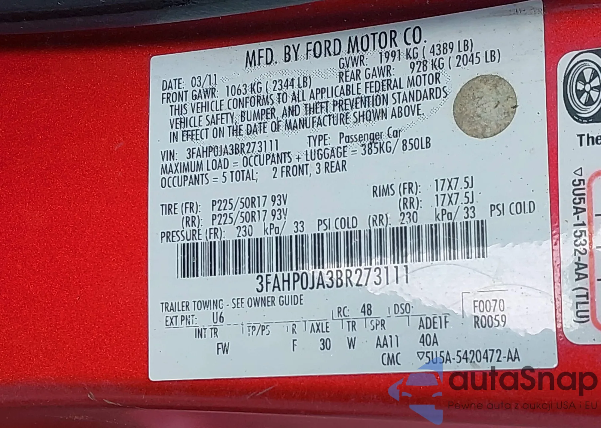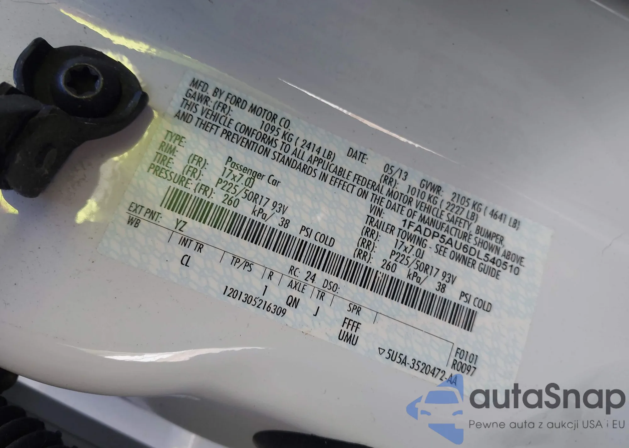 • VIN 1FADP5AU6DL540510