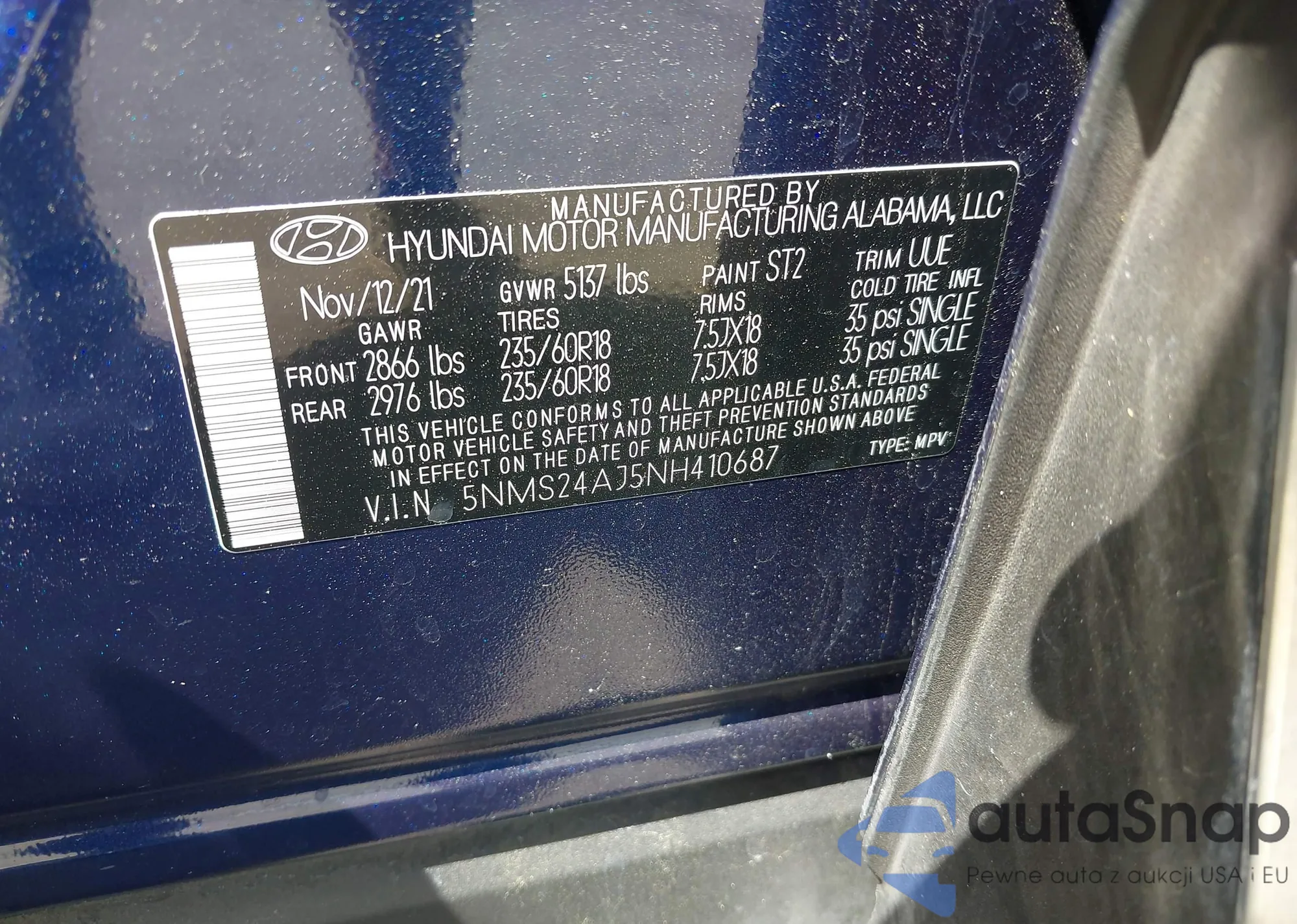 • VIN 5TFSX5EN9HX052395