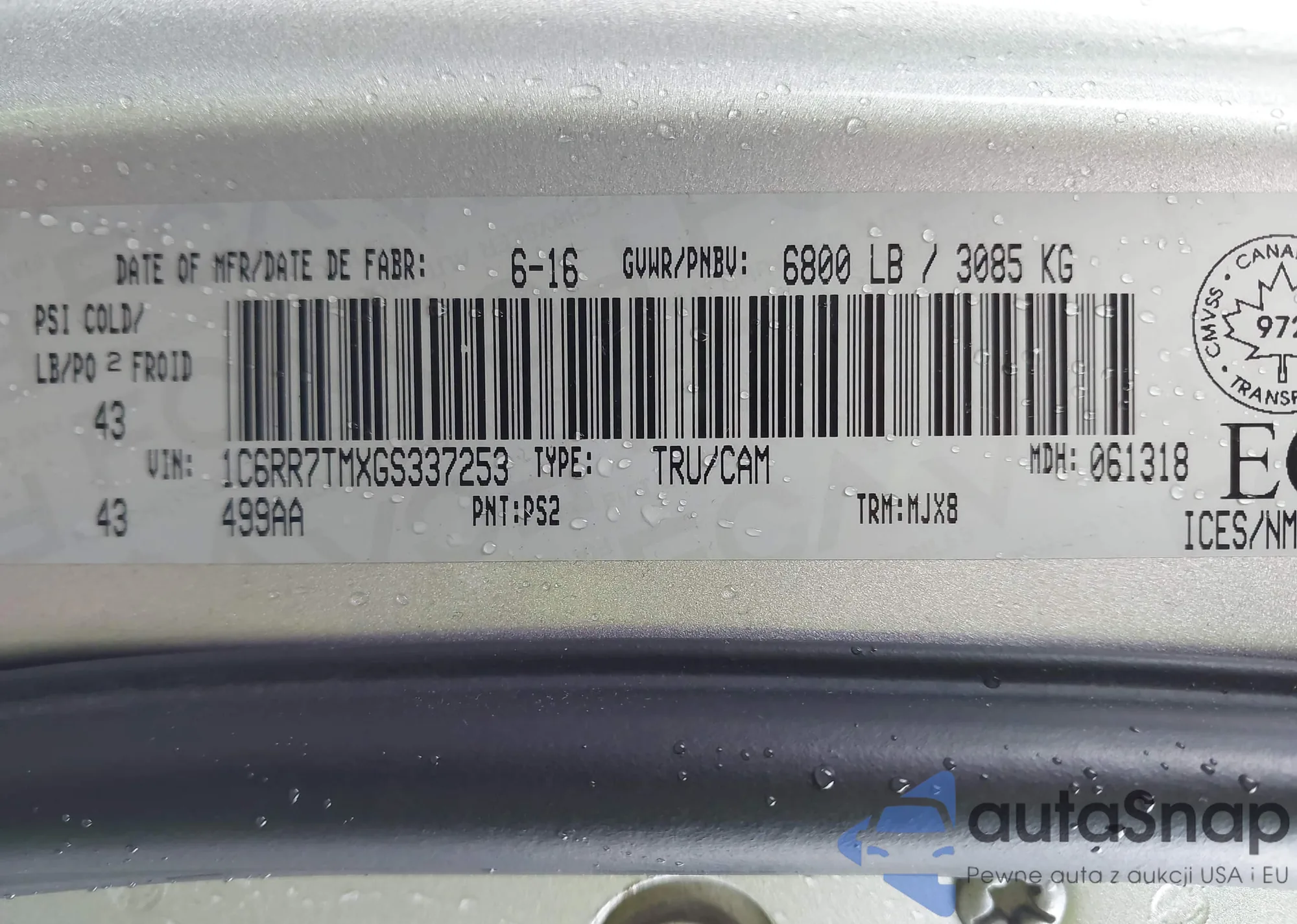 • VIN 1C6RR7TMXGS337253