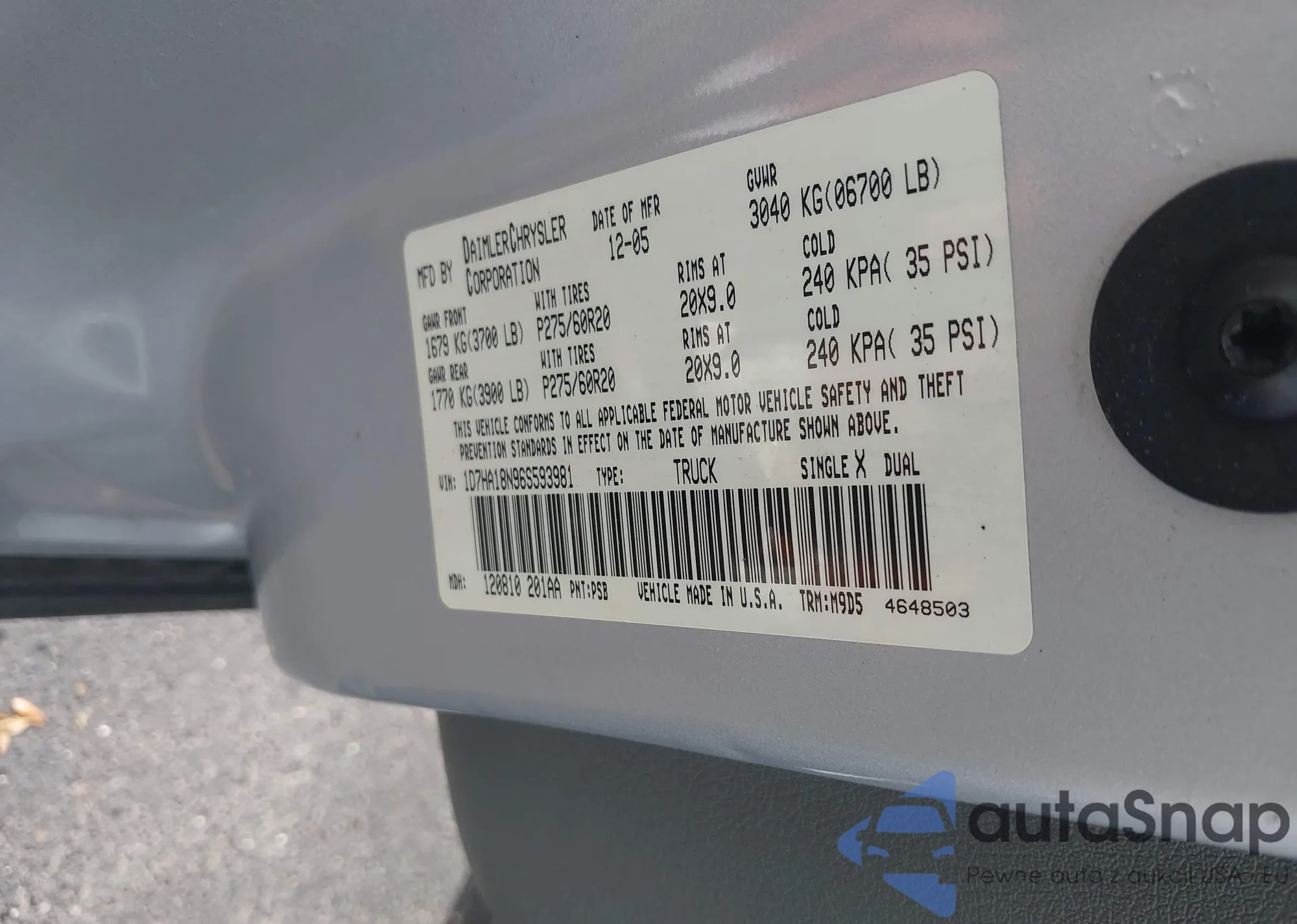 • VIN 1D7HA18N96S593981