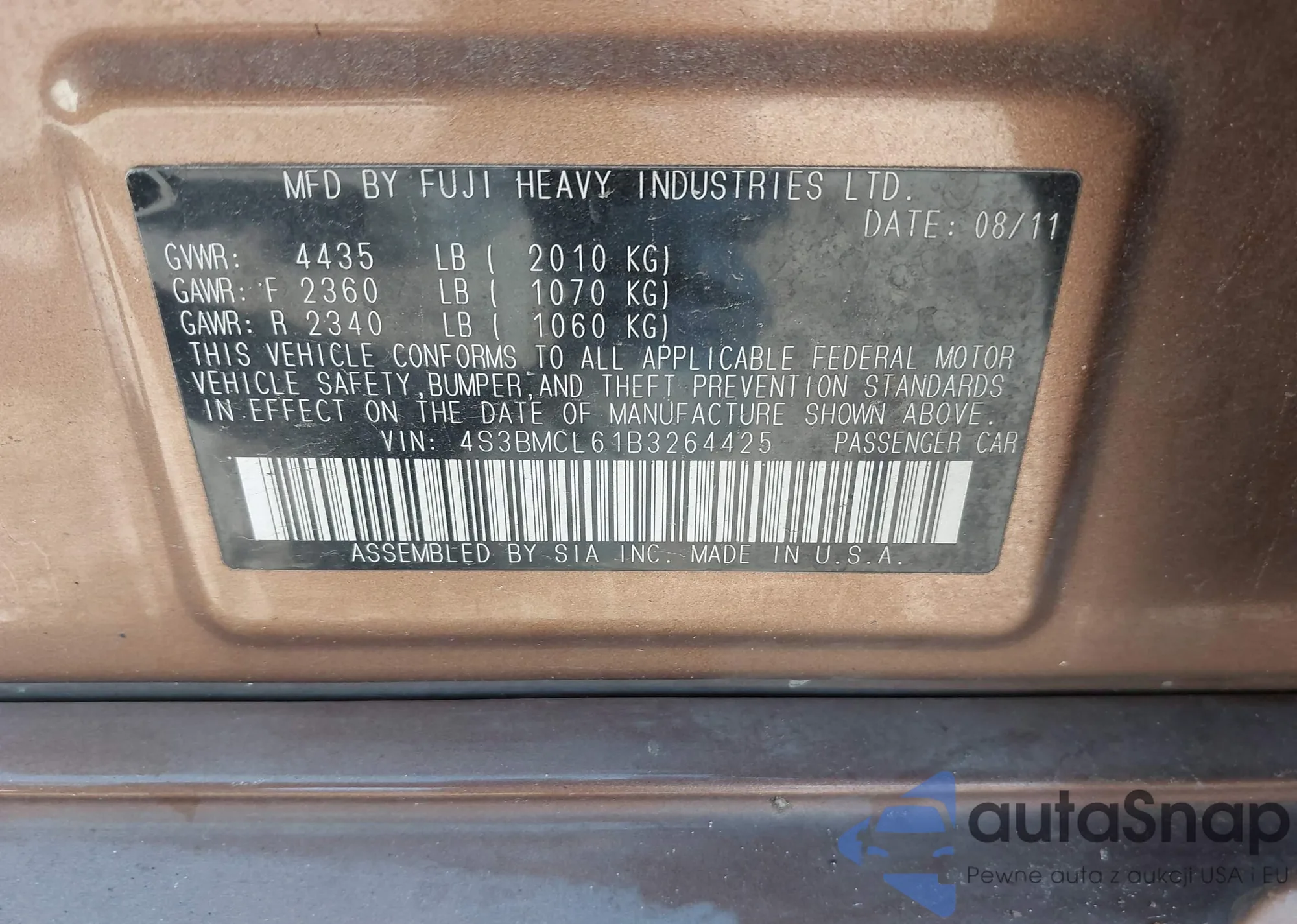 • VIN 4S3BMCL61B3264425