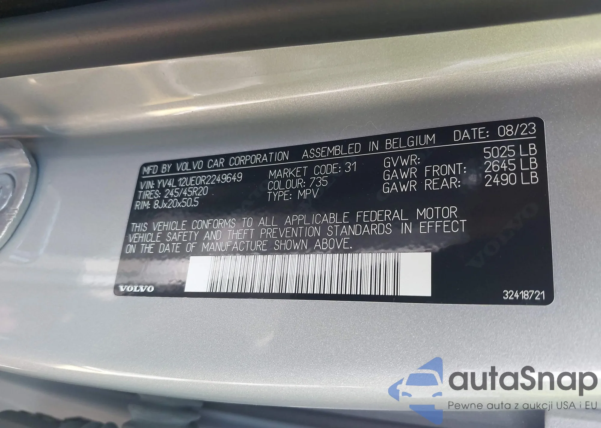 LOT: 42425231 VIN: YV4L12UE0R2249649