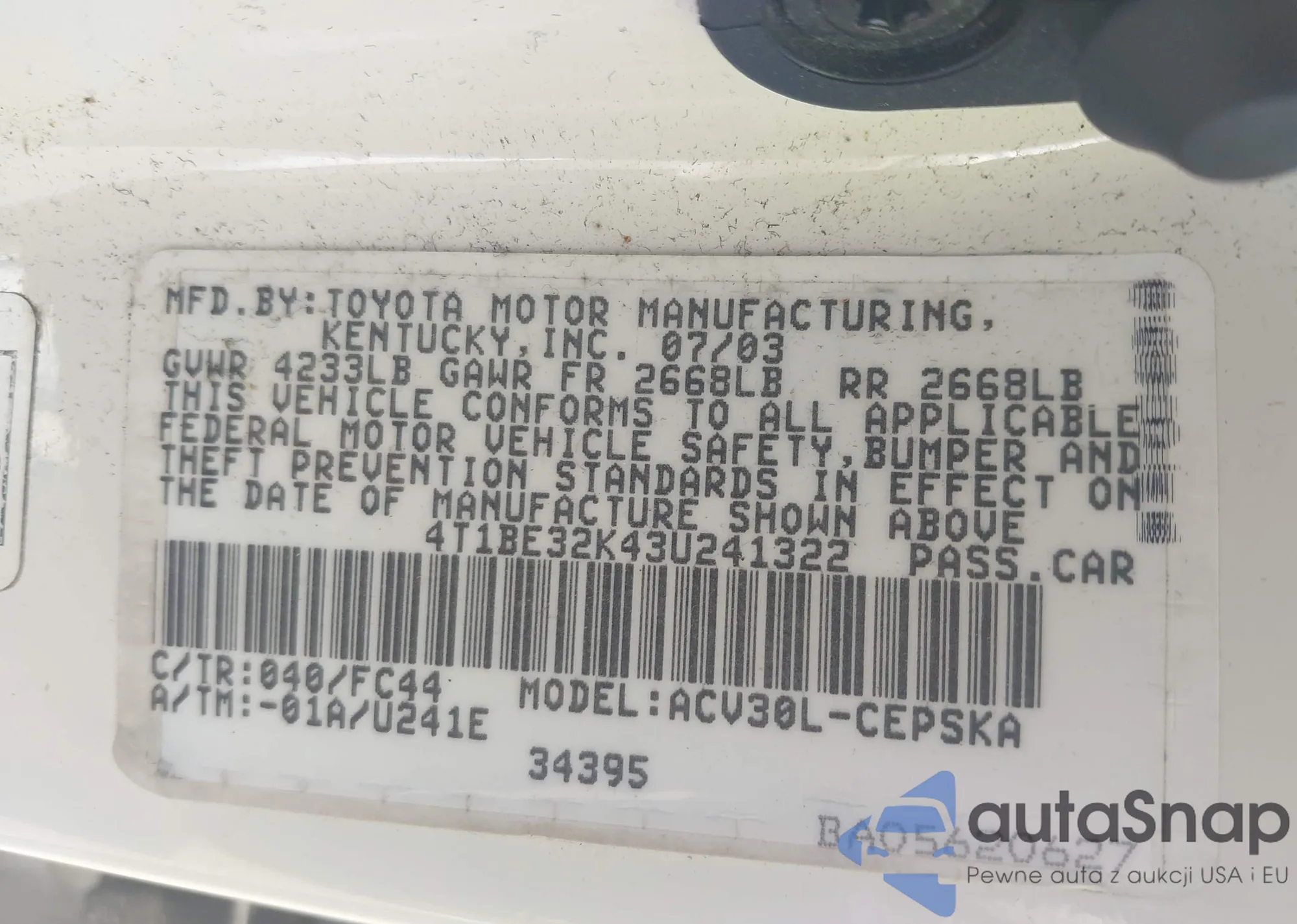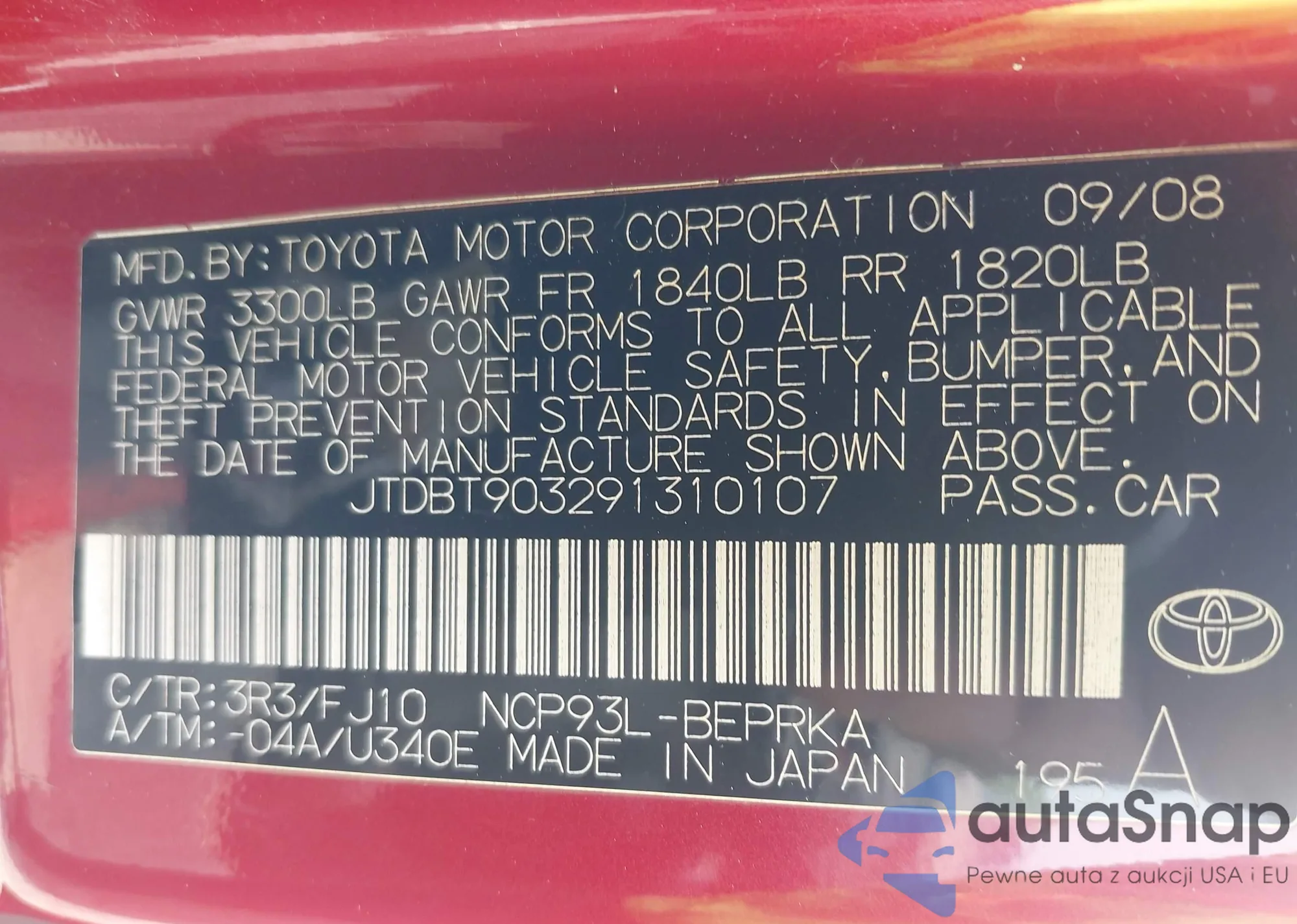 LOT: 42436904 VIN: JTDBT903291310107