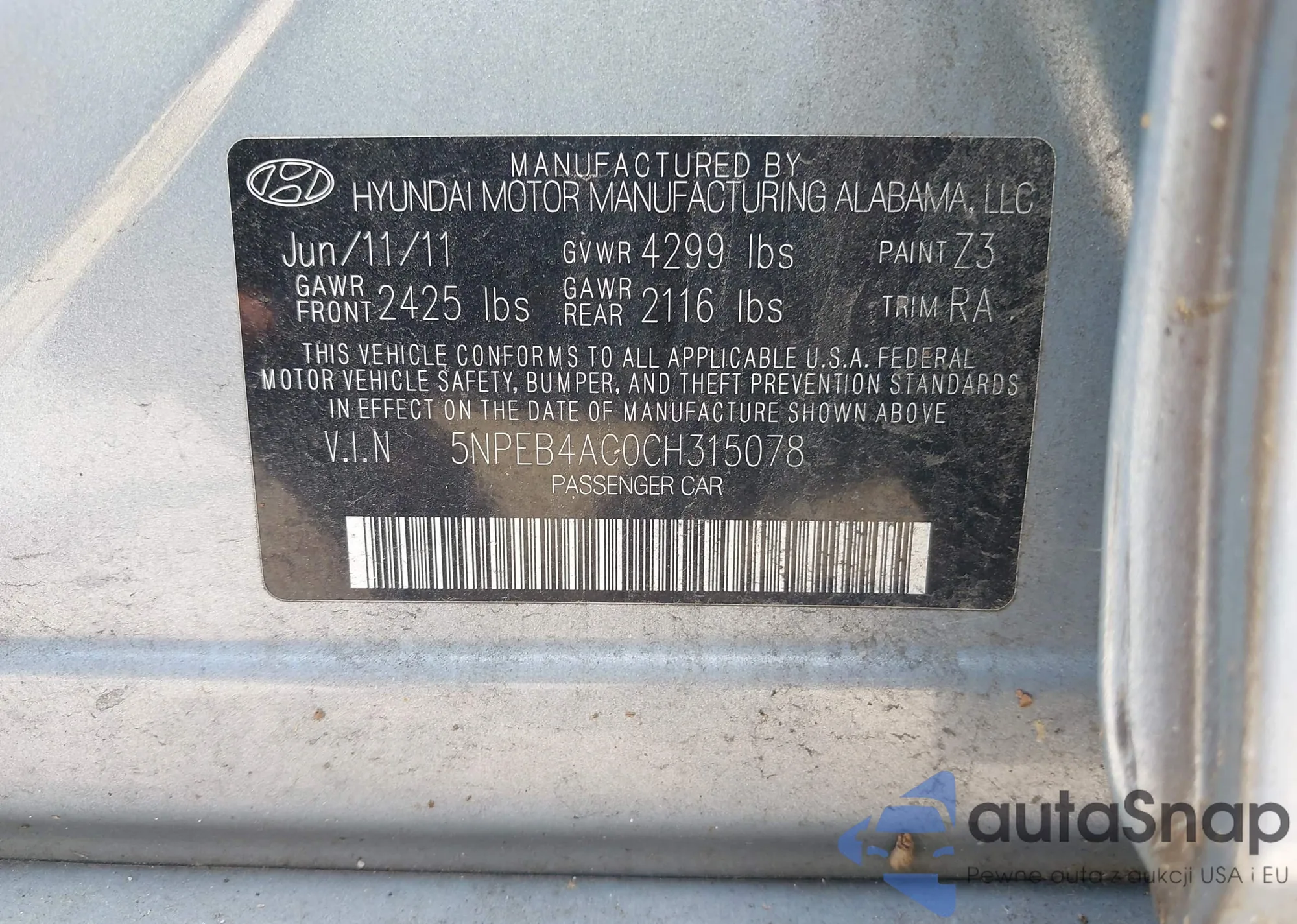 • VIN 5NPEB4AC0CH315078