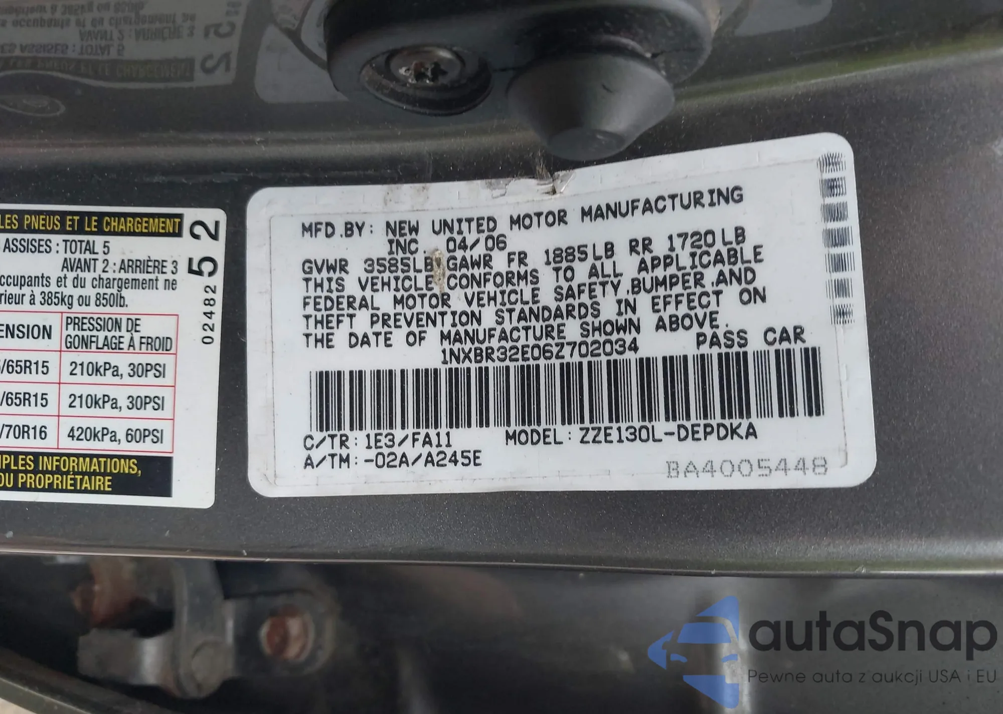 LOT: 42537897 VIN: 1NXBR32E06Z702034
