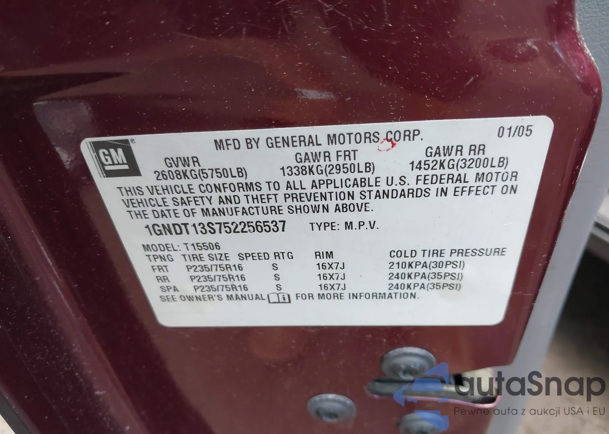 • VIN 1GNDT13S752256537