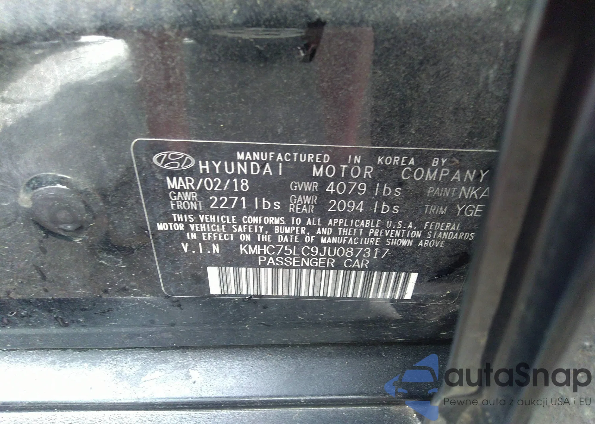 LOT: 32875658 VIN: KMHC75LC9JU087317