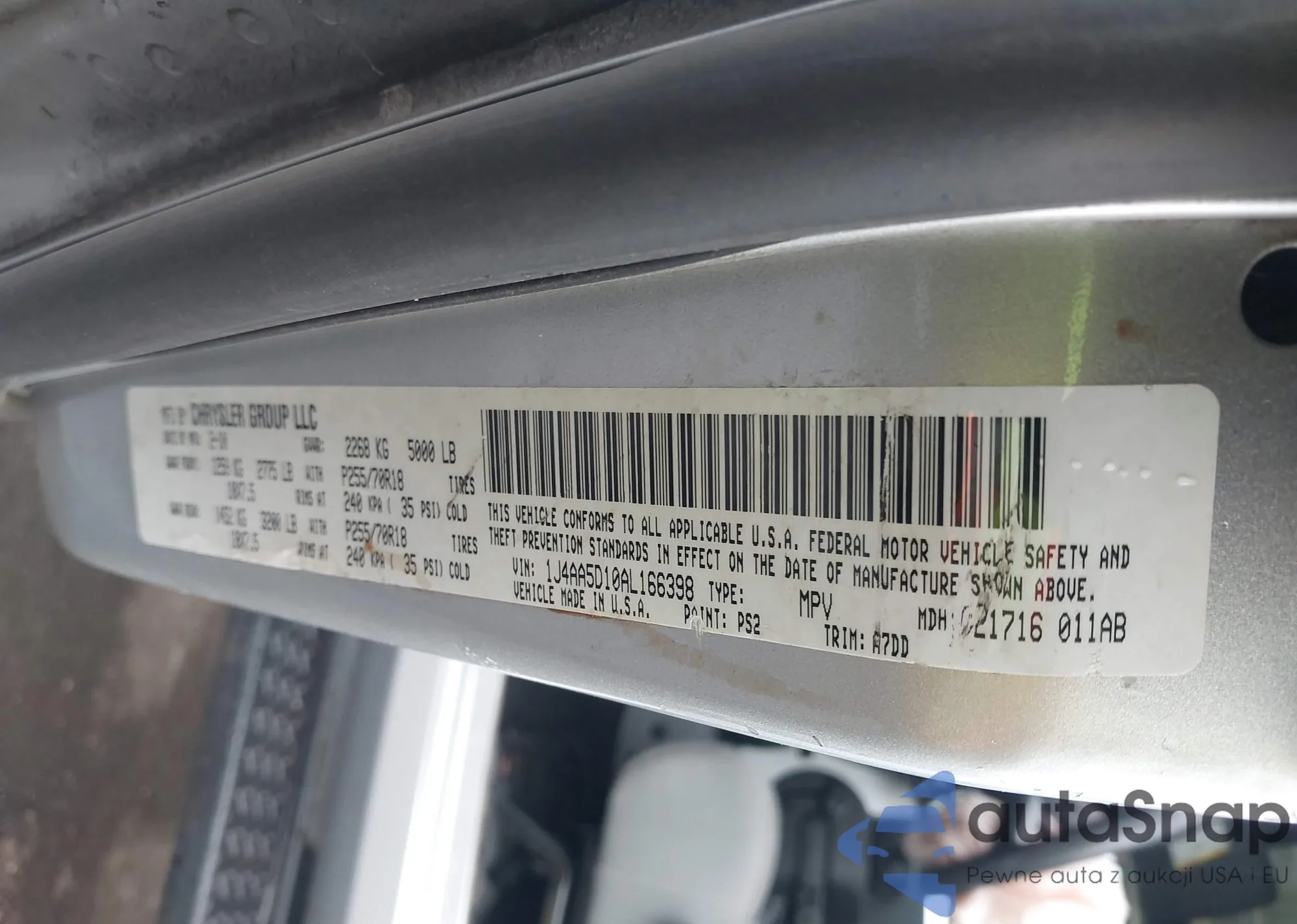 LOT: 42144530 VIN: 1J4AA5D10AL166398