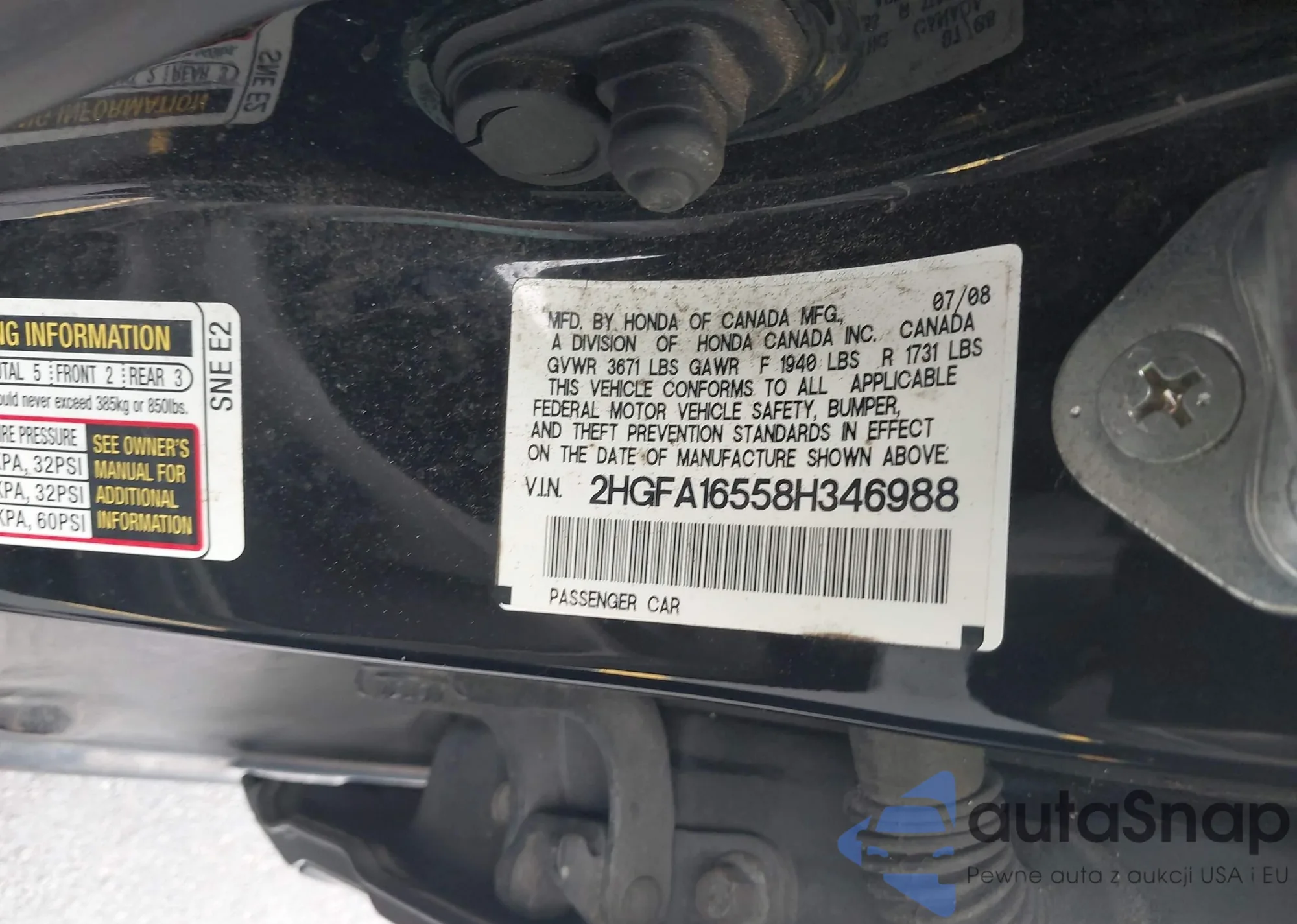 LOT: 42193259 VIN: 2HGFA16558H346988