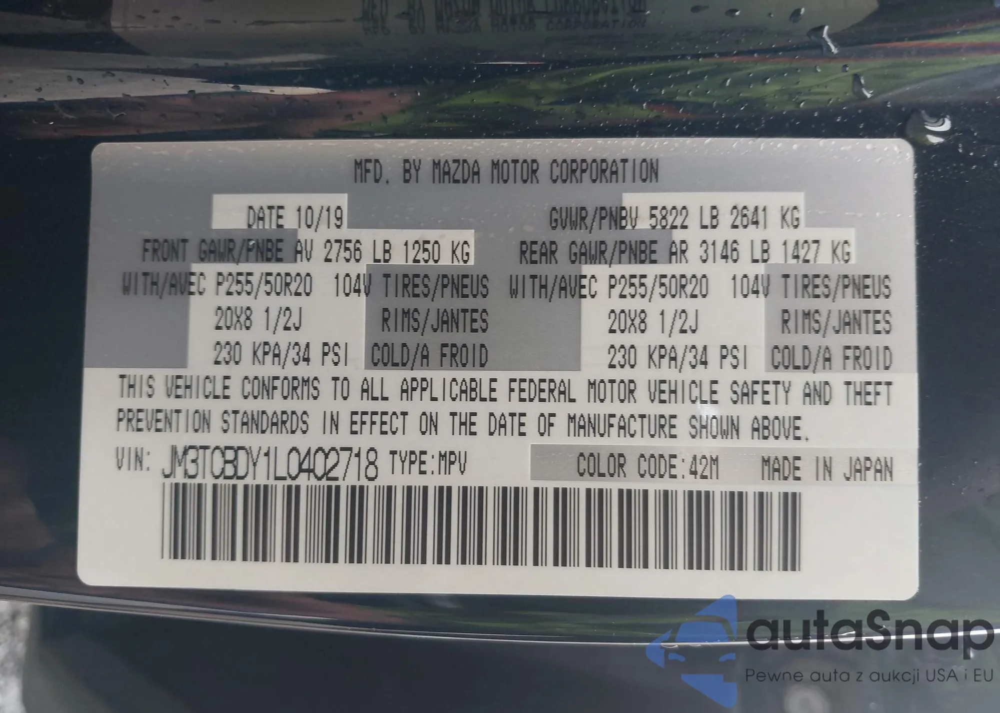 LOT: 42355511 VIN: JM3TCBDY1L0402718