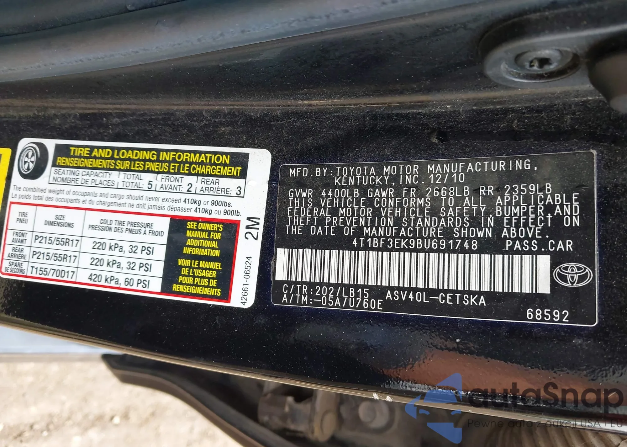LOT: 42364581 VIN: 4T1BF3EK9BU691748