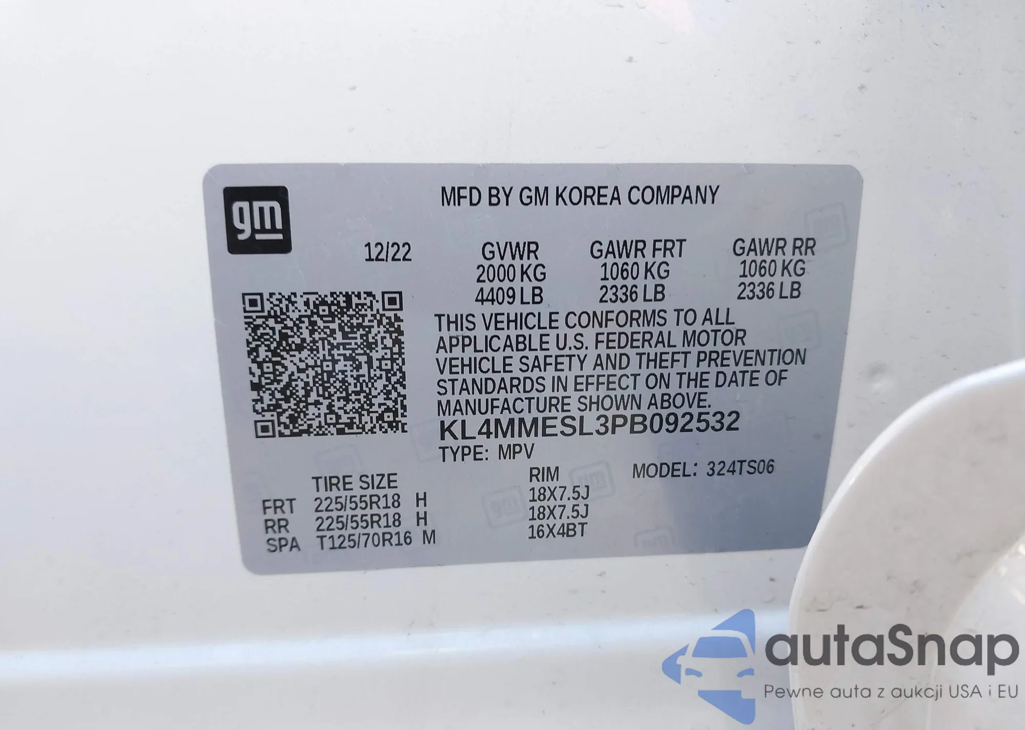 LOT: 42447915 VIN: KL4MMESL3PB092532