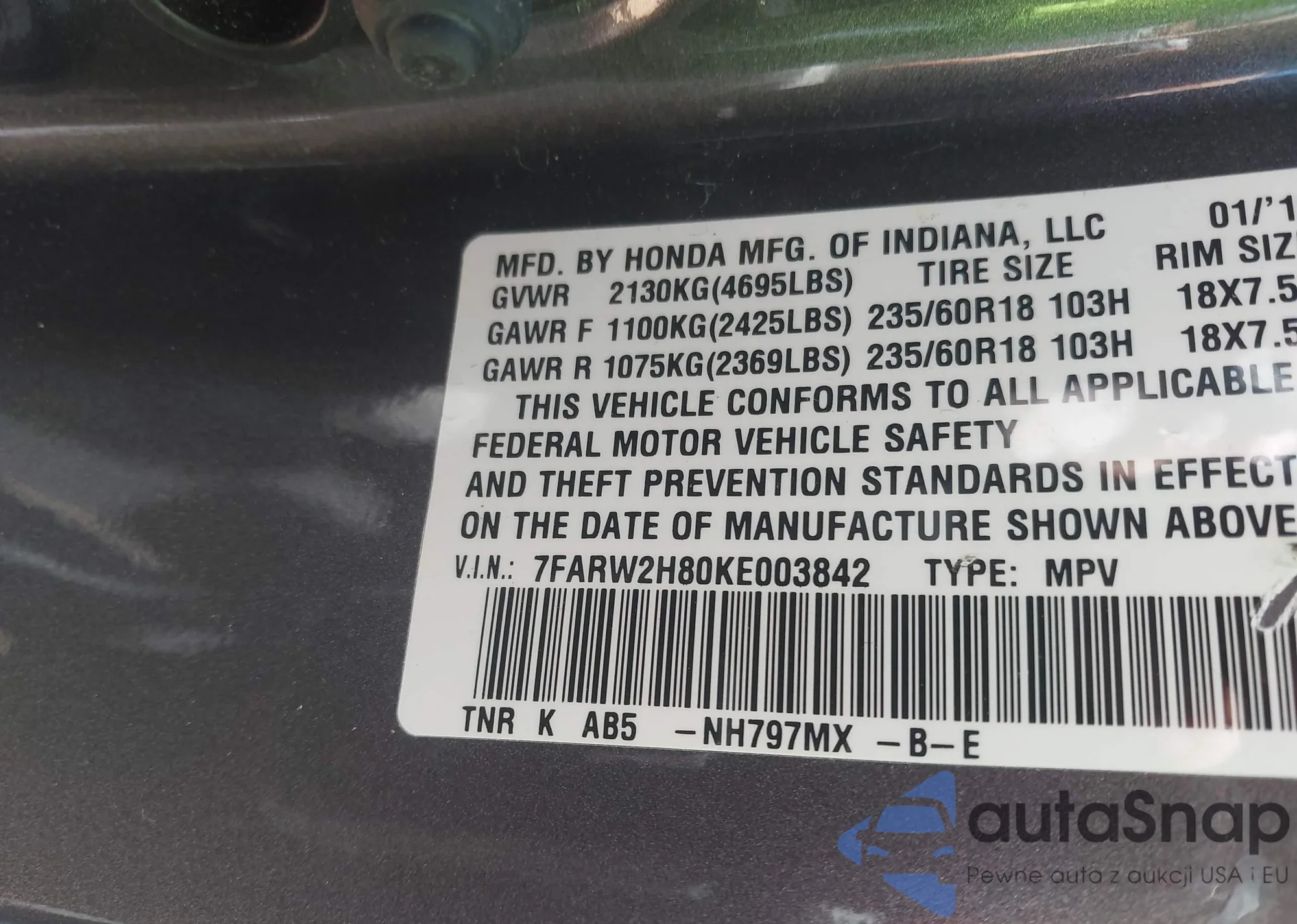 • VIN 7FARW2H80KE003842
