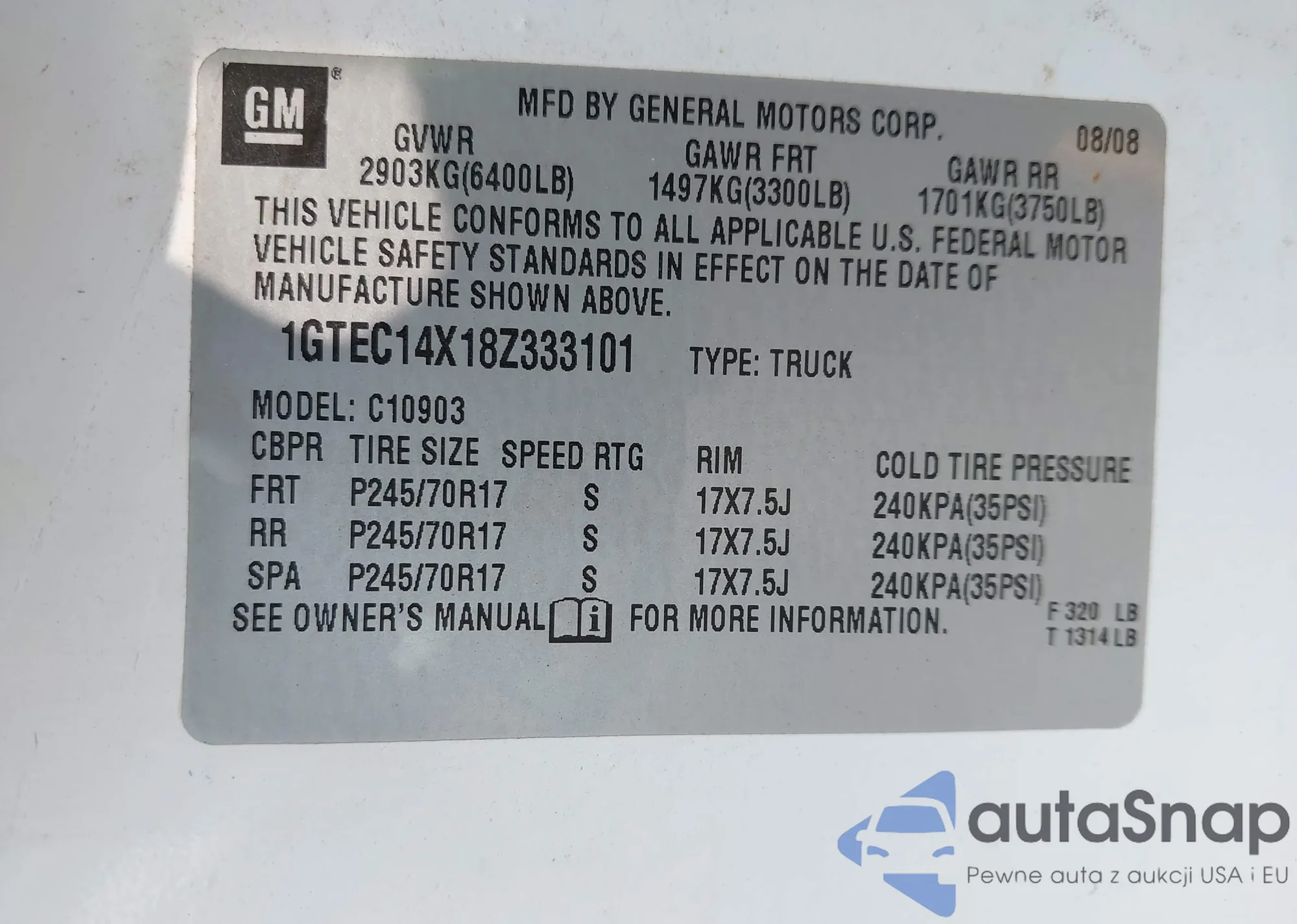 • VIN 1GTEC14X18Z333101