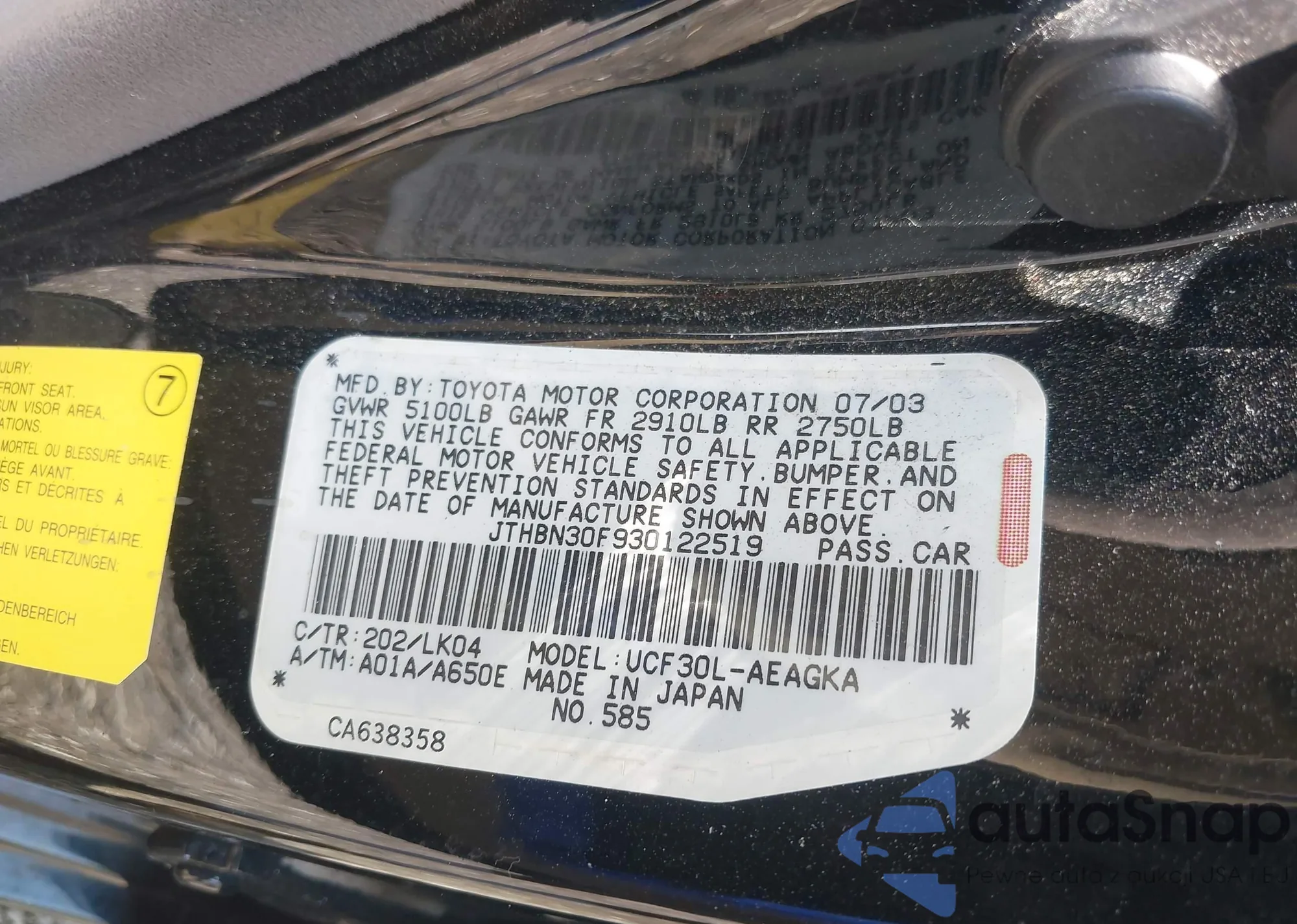 LOT: 42465353 VIN: JTHBN30F930122519