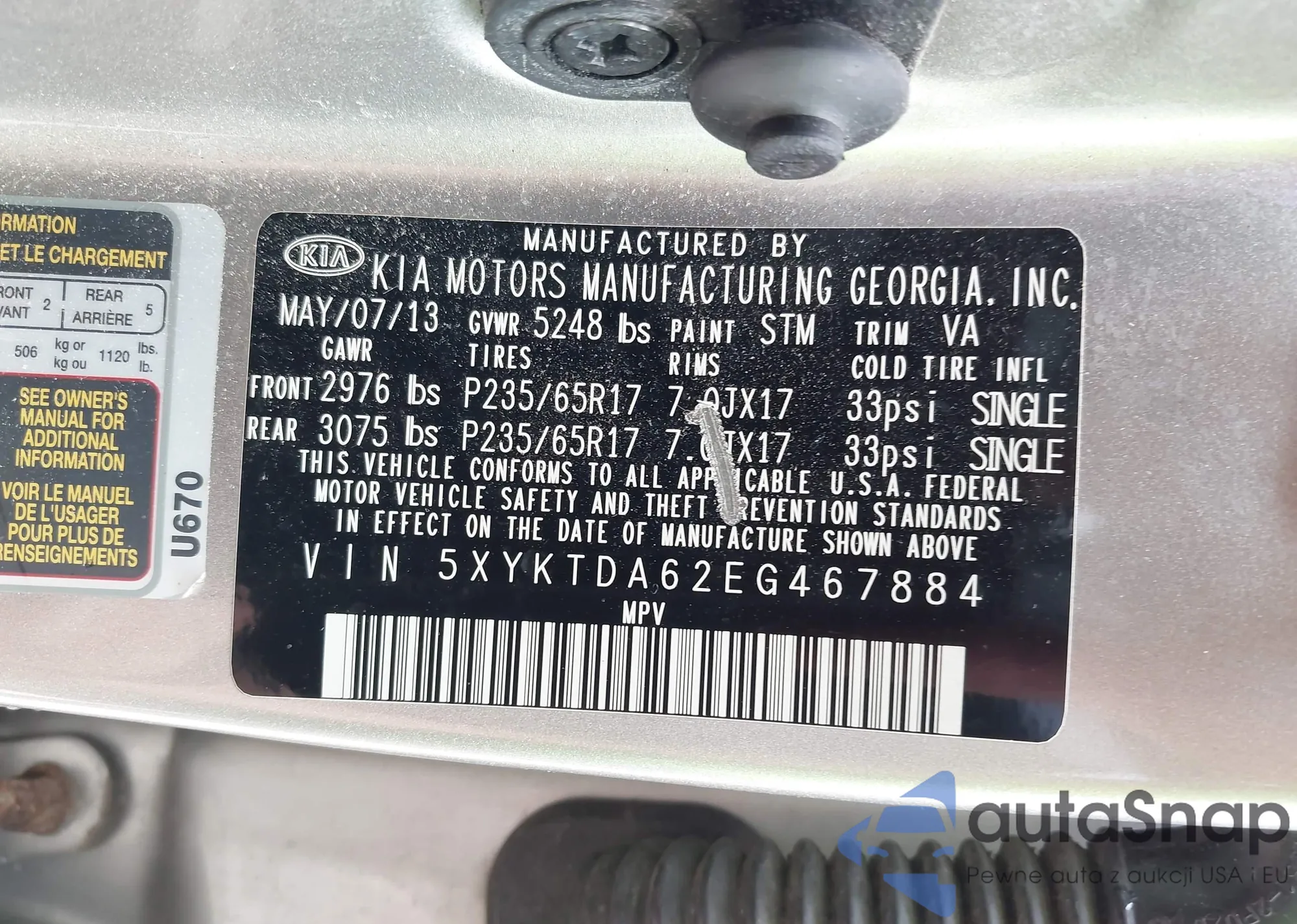 • VIN 5XYKTDA62EG467884