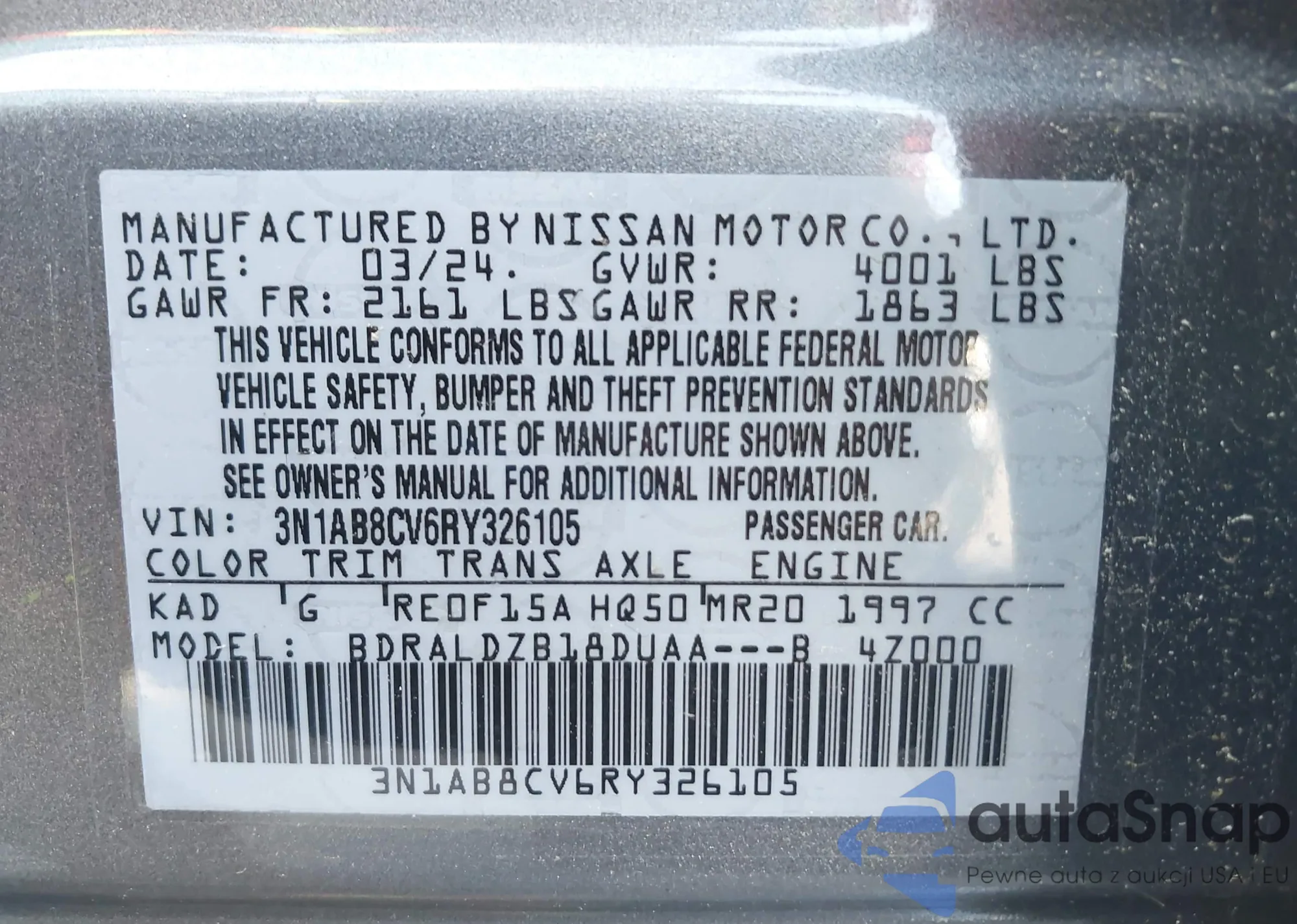 LOT: 42391179 VIN: 1N4AL3AP7FC274303