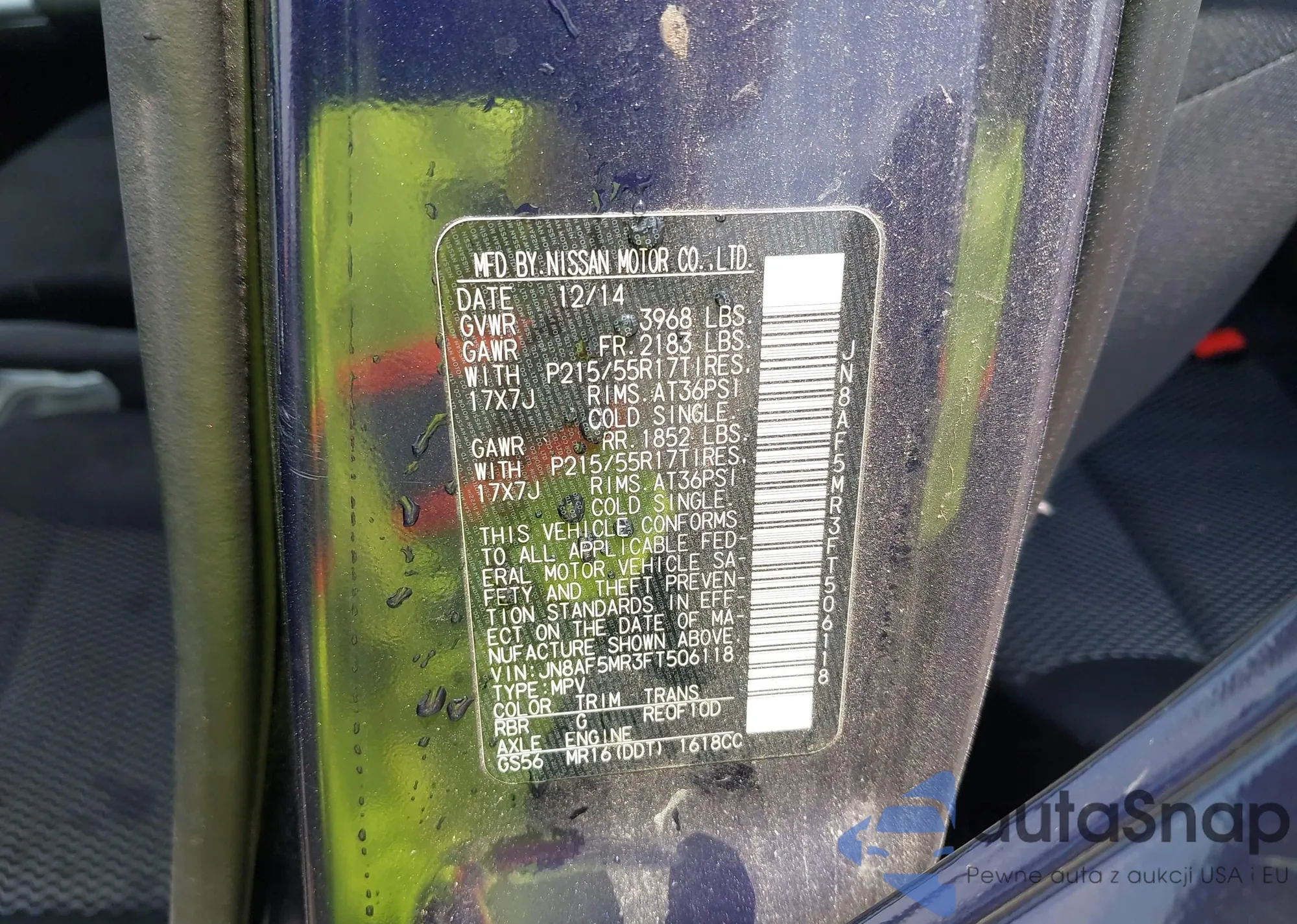 LOT: 42446575 VIN: JN8AF5MR3FT506118