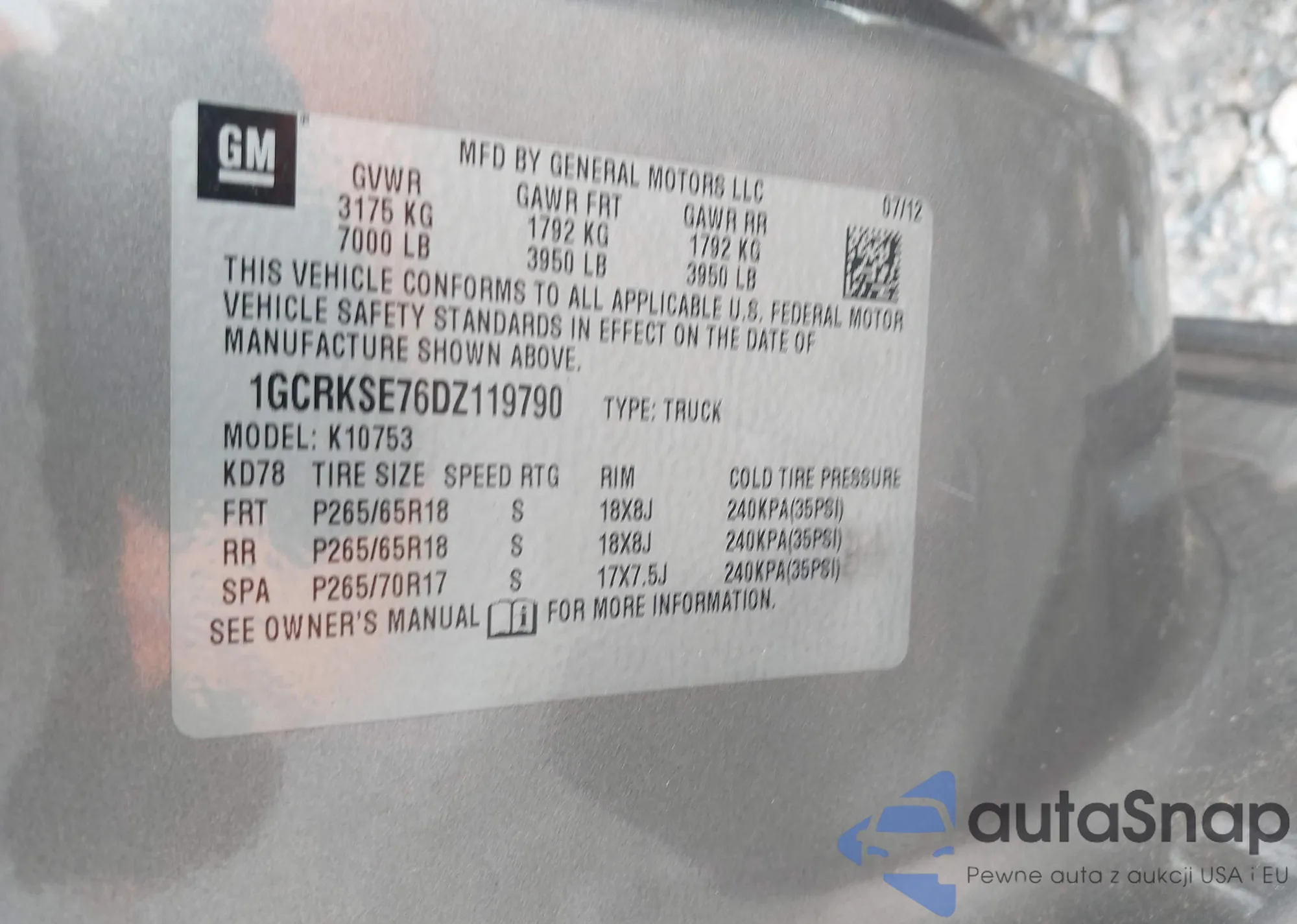 • VIN 3GCRKREA4AG218950