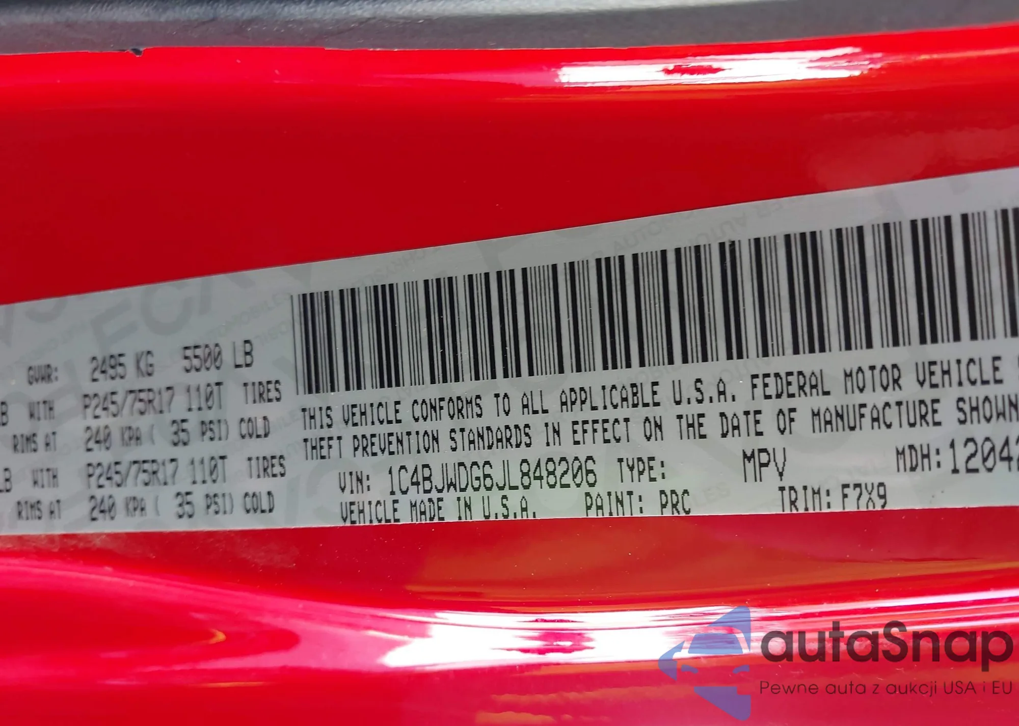 • VIN 1C4BJWDG6JL848206