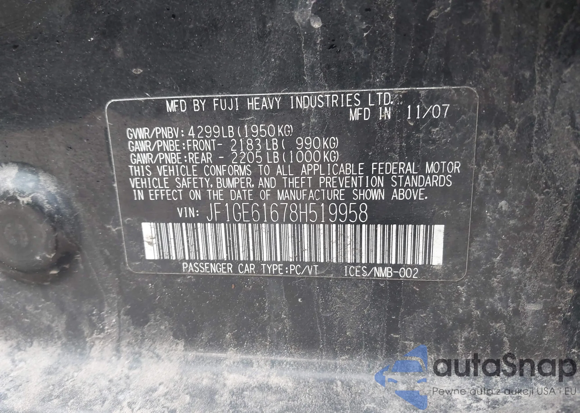 LOT: 42350819 VIN: JF1GE61678H519958