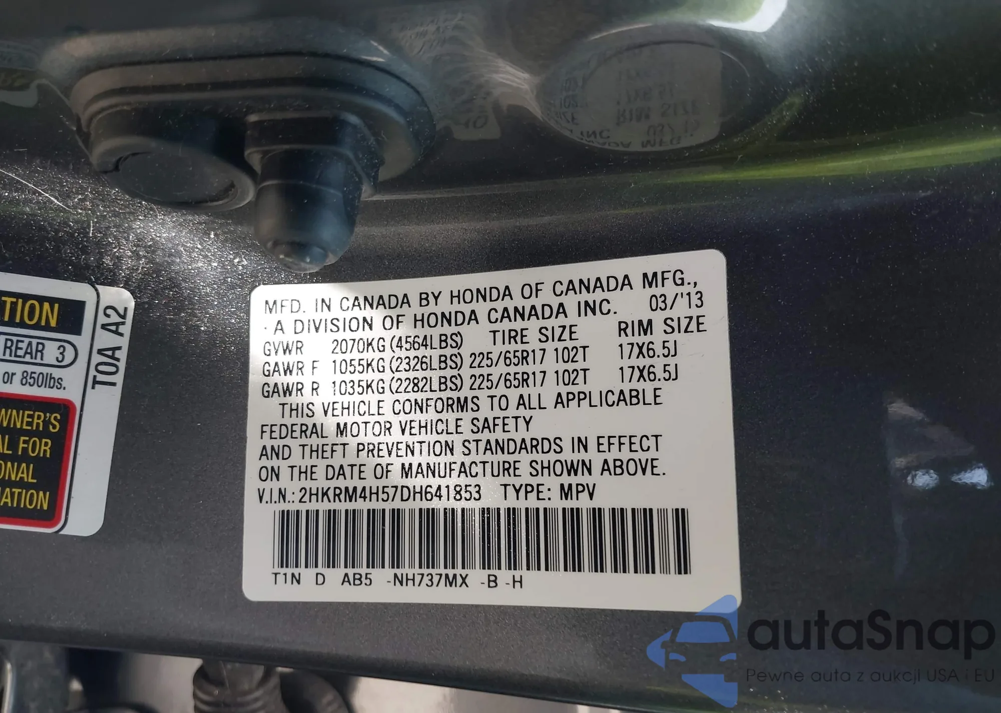 • VIN 2HKRM4H57DH641853