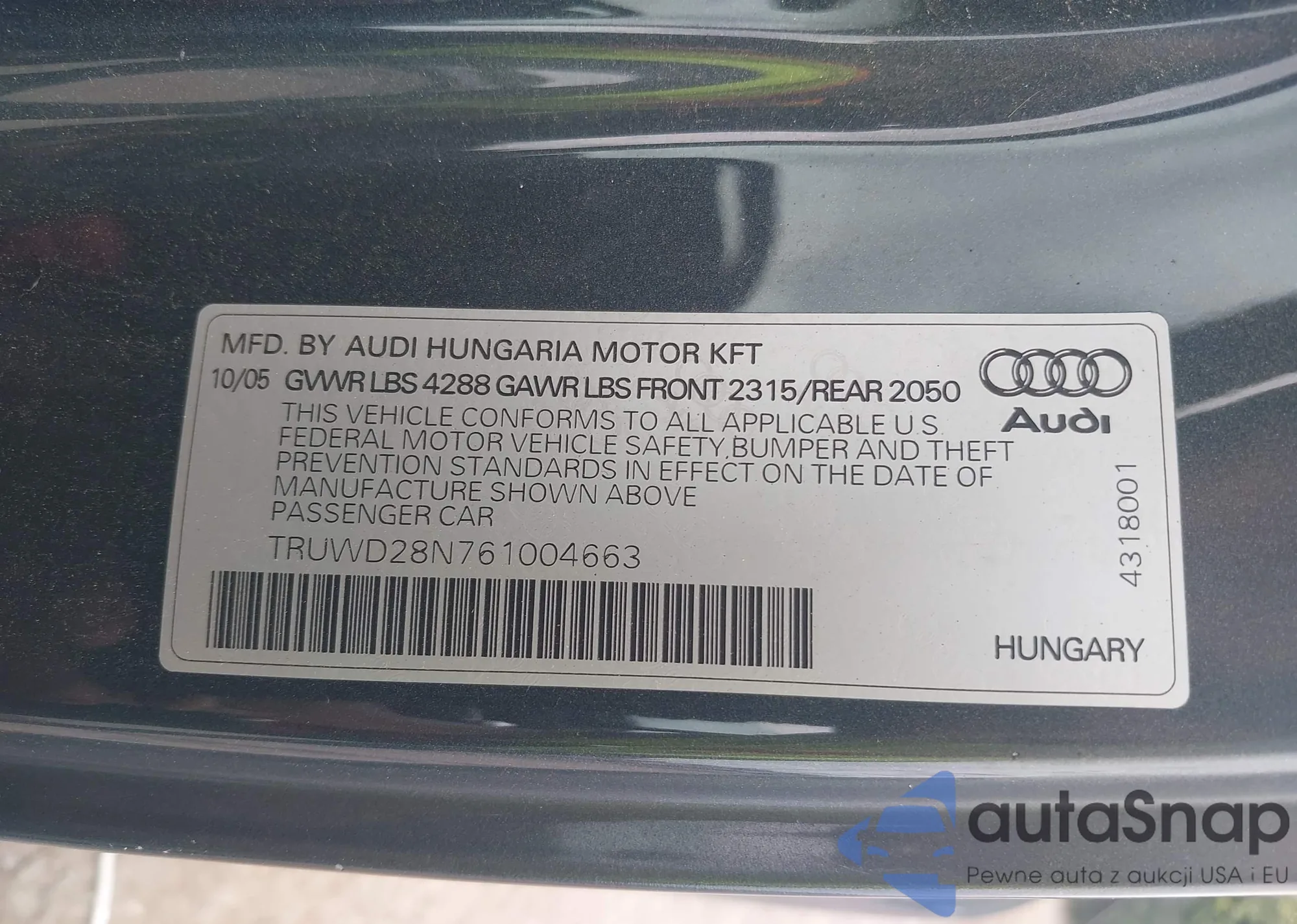 • VIN WA1LAAF78HD026784