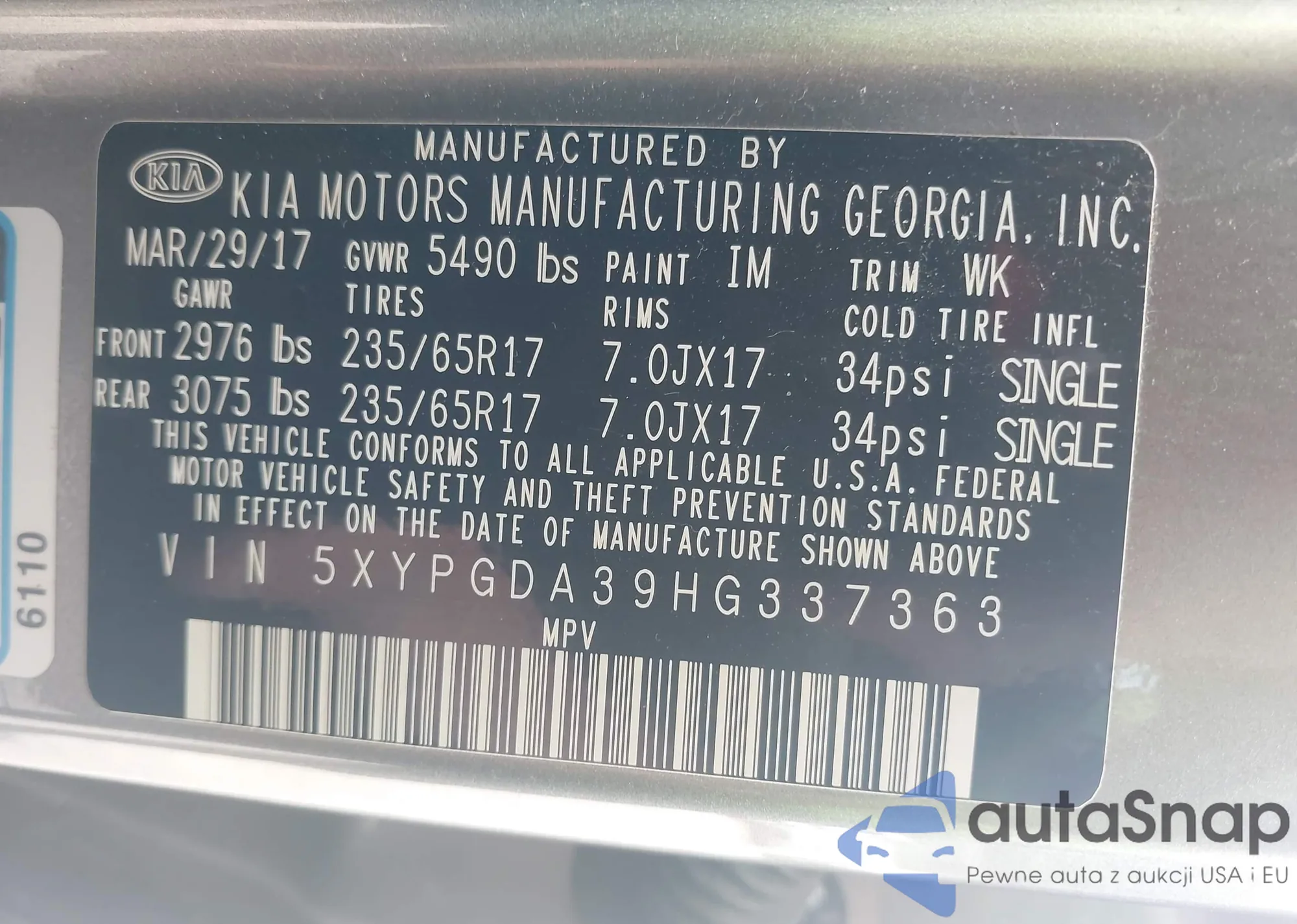 • VIN 5XYPG4A33GG053905