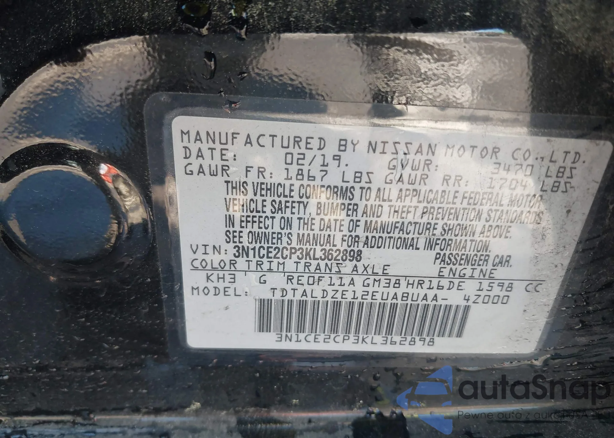 • VIN 3N1CE2CP3KL362898