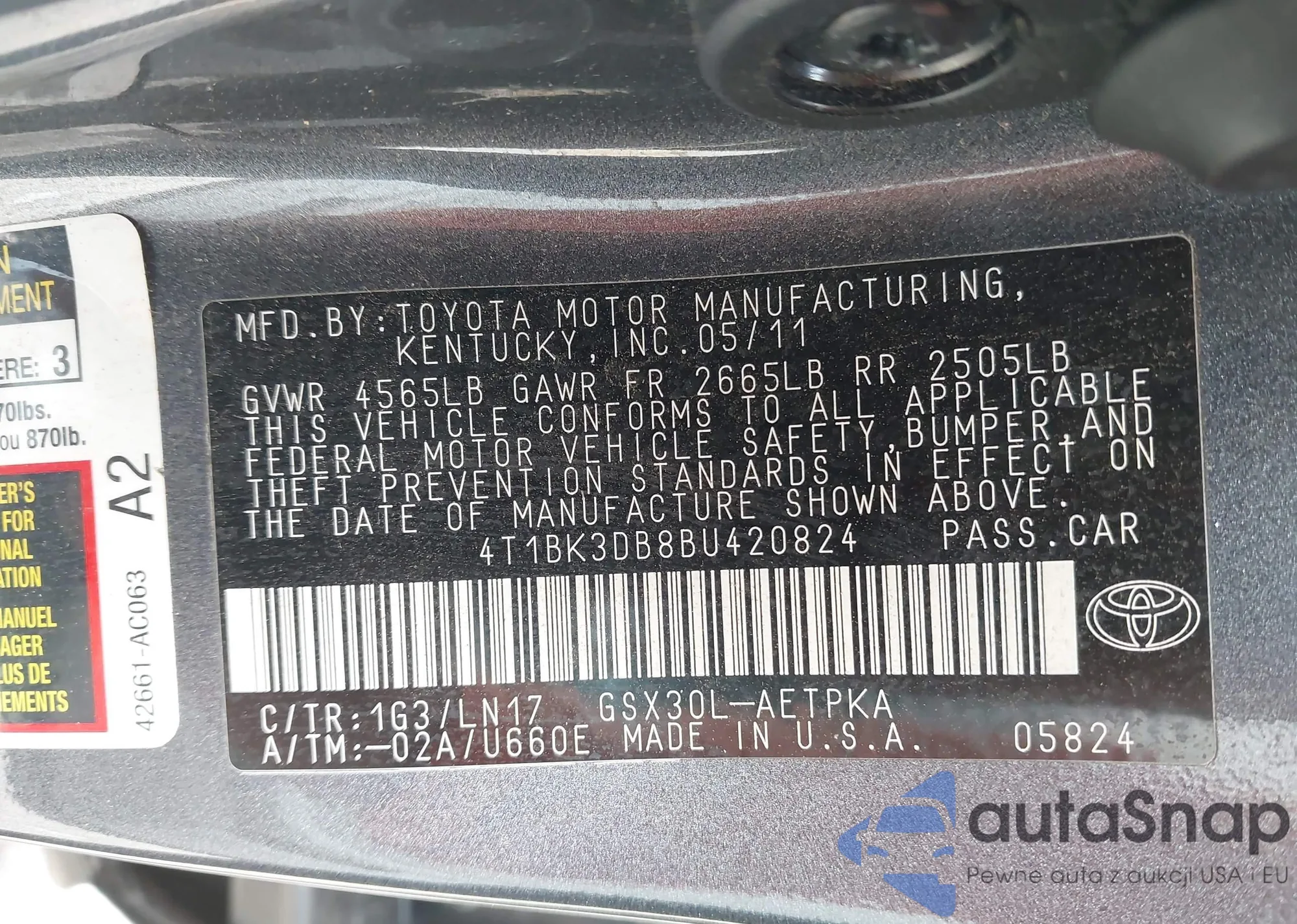 • VIN 4T1BK3DB8BU420824