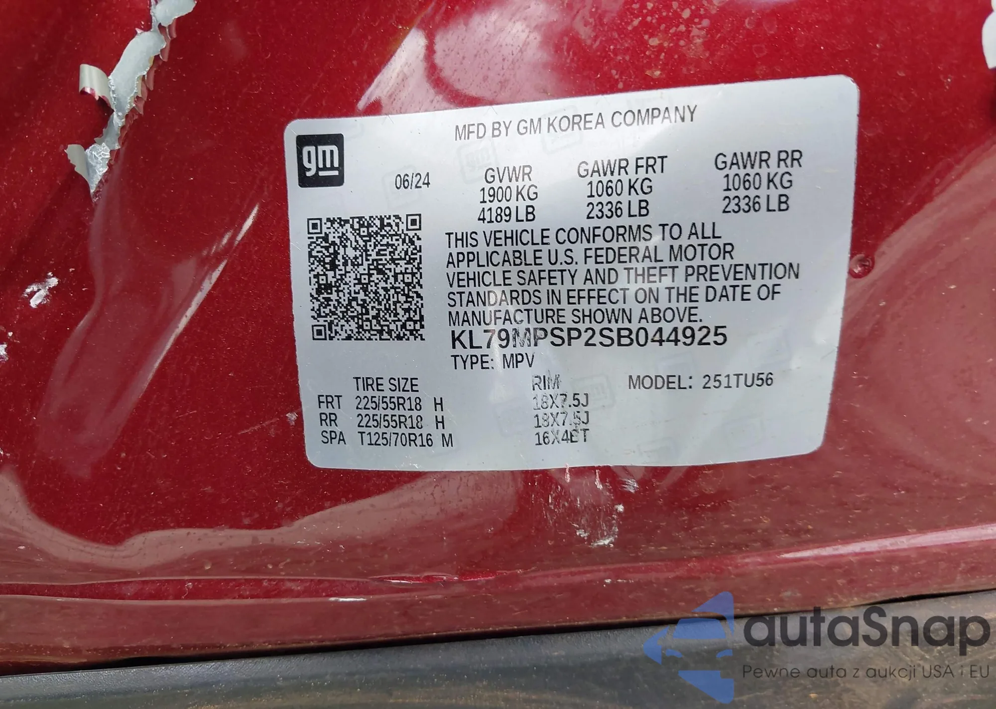 • VIN KL79MPSP2SB044925