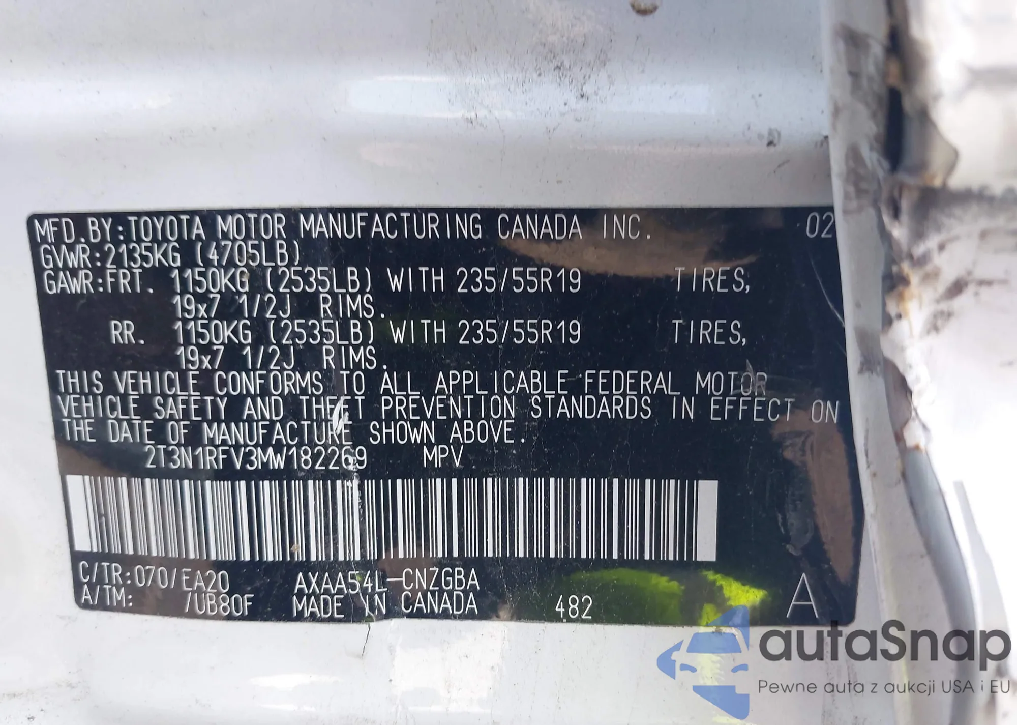 LOT: 42226897 VIN: 2T3N1RFV3MW182269