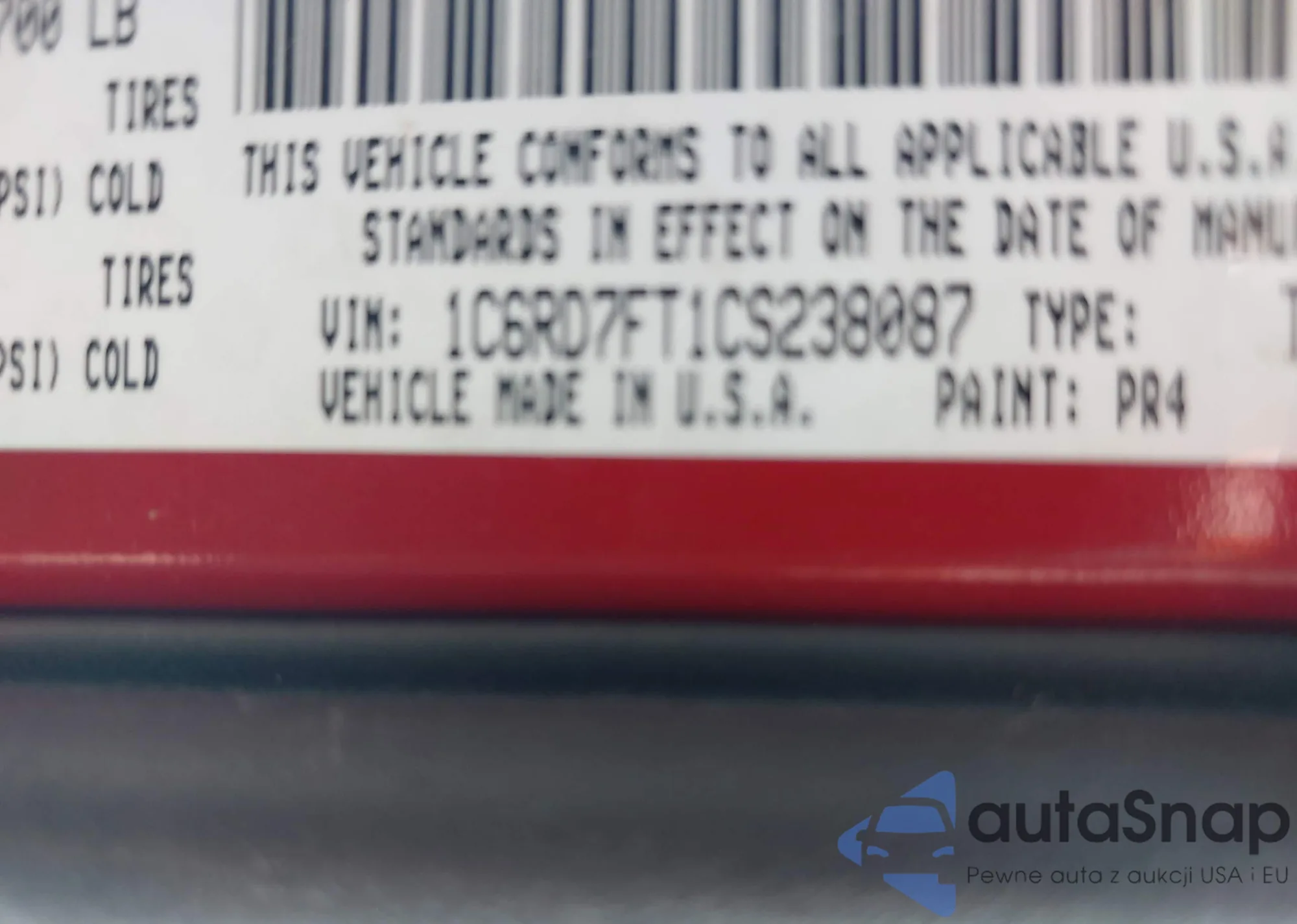 • VIN 1C6RD7FT1CS238087