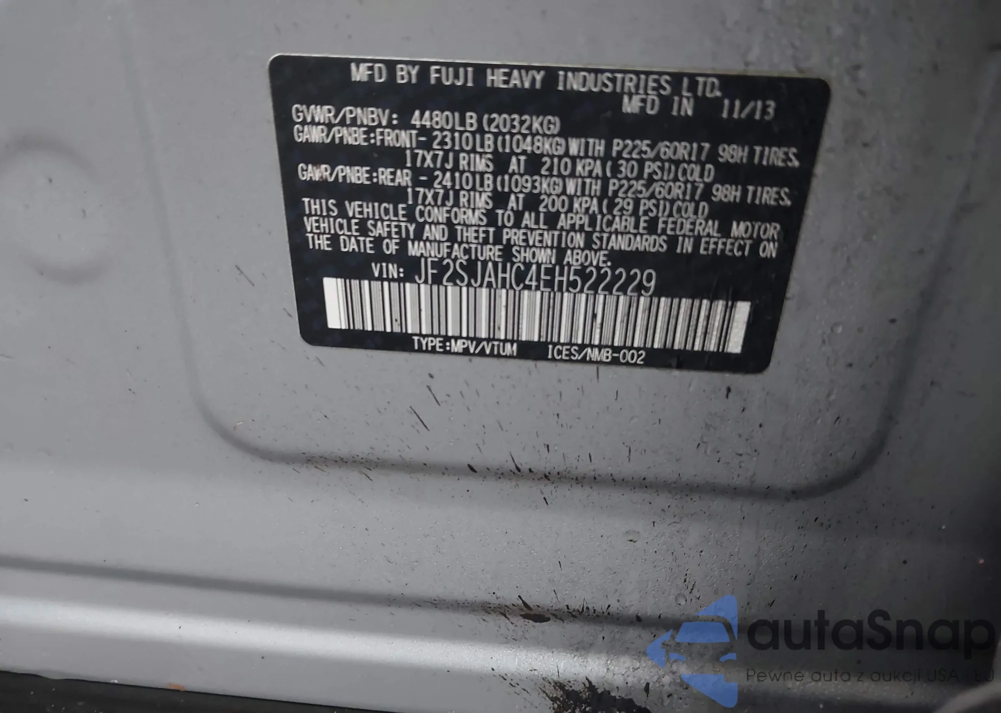 • VIN JF2SJAHC4EH522229