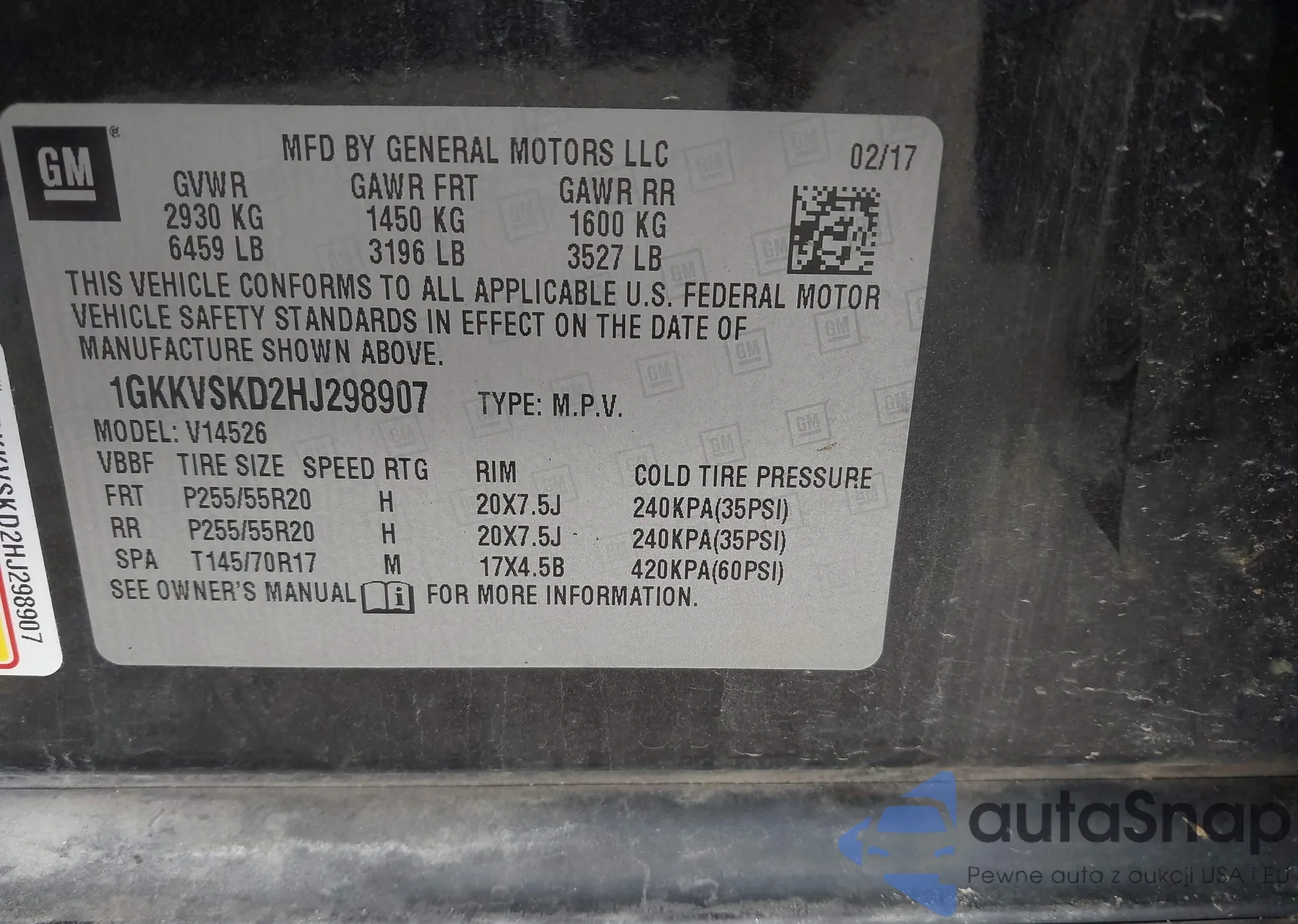 • VIN 1GKKVSKD2HJ298907