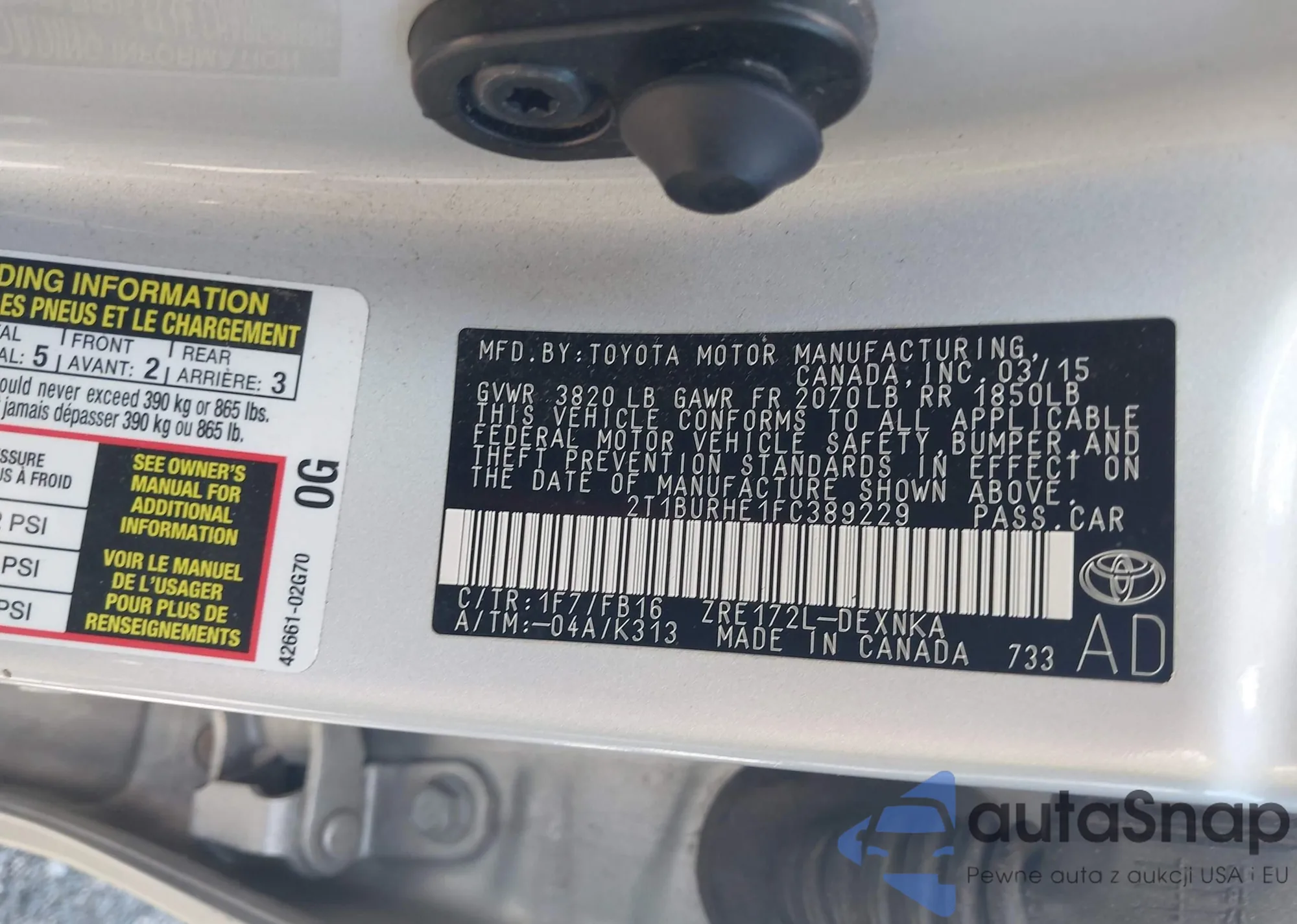 • VIN 2T1BURHE1FC389229